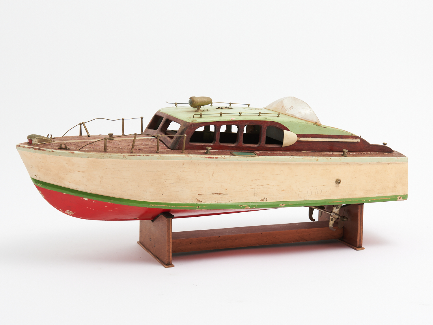 A VINTAGE HAND BUILT WOODEN ELECTRIC BOAT (A/F) L.55CM, LEONARD JOEL DELIVERY SIZE: MEDIUM