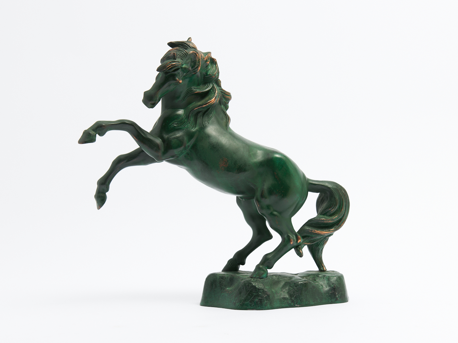 AN ART DECO STYLE PATINATED BRASS REARING HORSE H.34.5CM, LEONARD JOEL DELIVERY SIZE: MEDIUM