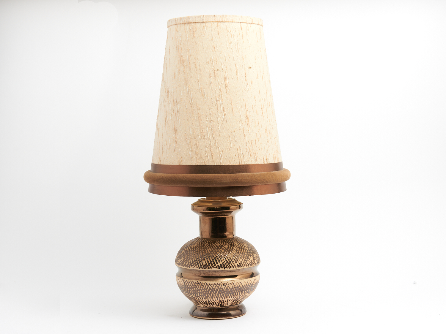 AN ELLIS POTTERY SCARIFINO DECORATED LAMP BASE WITH ORIGINAL SHADE H.66CM, LEONARD JOEL DELIVERY SIZE: LARGE