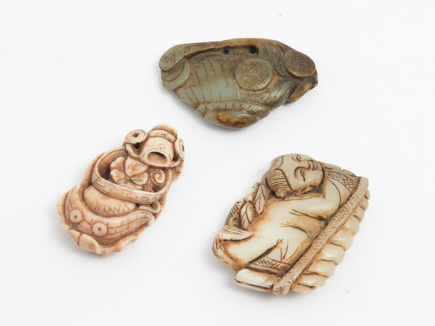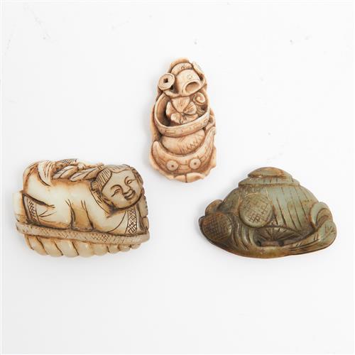 THREE ANTIQUE CHINESE JADE FIGURES L.7CM (LONGEST), LEONARD JOEL DELIVERY SIZE: SMALL