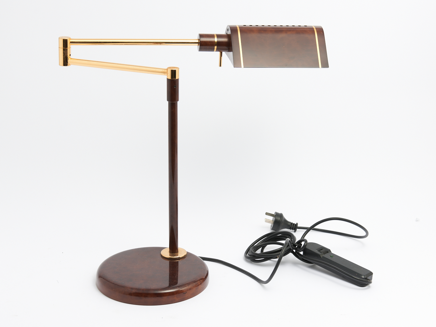 A HEAVY ITALIAN 1960S BRASS AND ENAMEL DESK LAMP H.46CM, LEONARD JOEL DELIVERY SIZE: MEDIUM