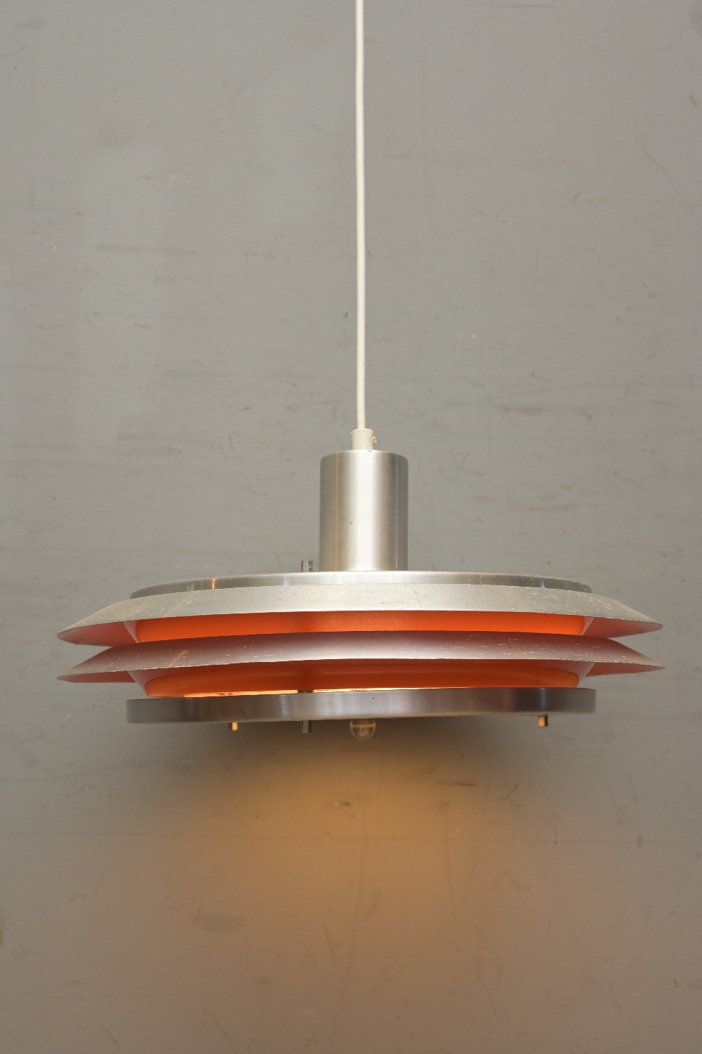 A DANISH PENDANT LIGHT IN BRUSHED ALUMINIUM (A/F) (39DIAM CM) (LEONARD JOEL DELIVERY SIZE: MEDIUM)