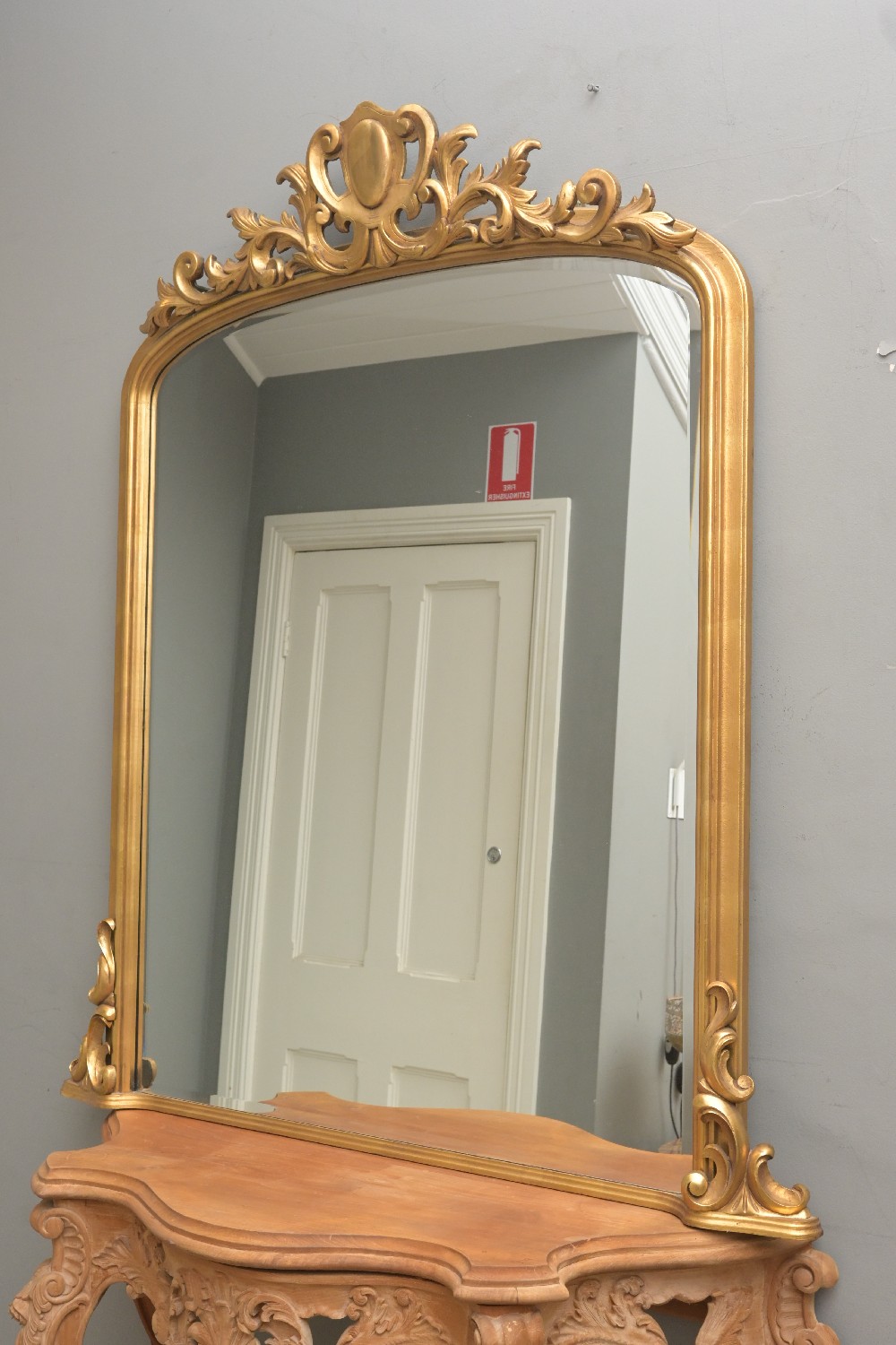 A CARVED GILTWOOD OVERMANTEL MIRROR (150H X 112W CM) (PLEASE NOTE THIS HEAVY ITEM MUST BE REMOVED BY CARRIERS AT THE CUSTOMER'S EXPENSE. LEONARD JOEL STAFF CANNOT ASSIST CARRYING THIS ITEM) (X-LARGE
