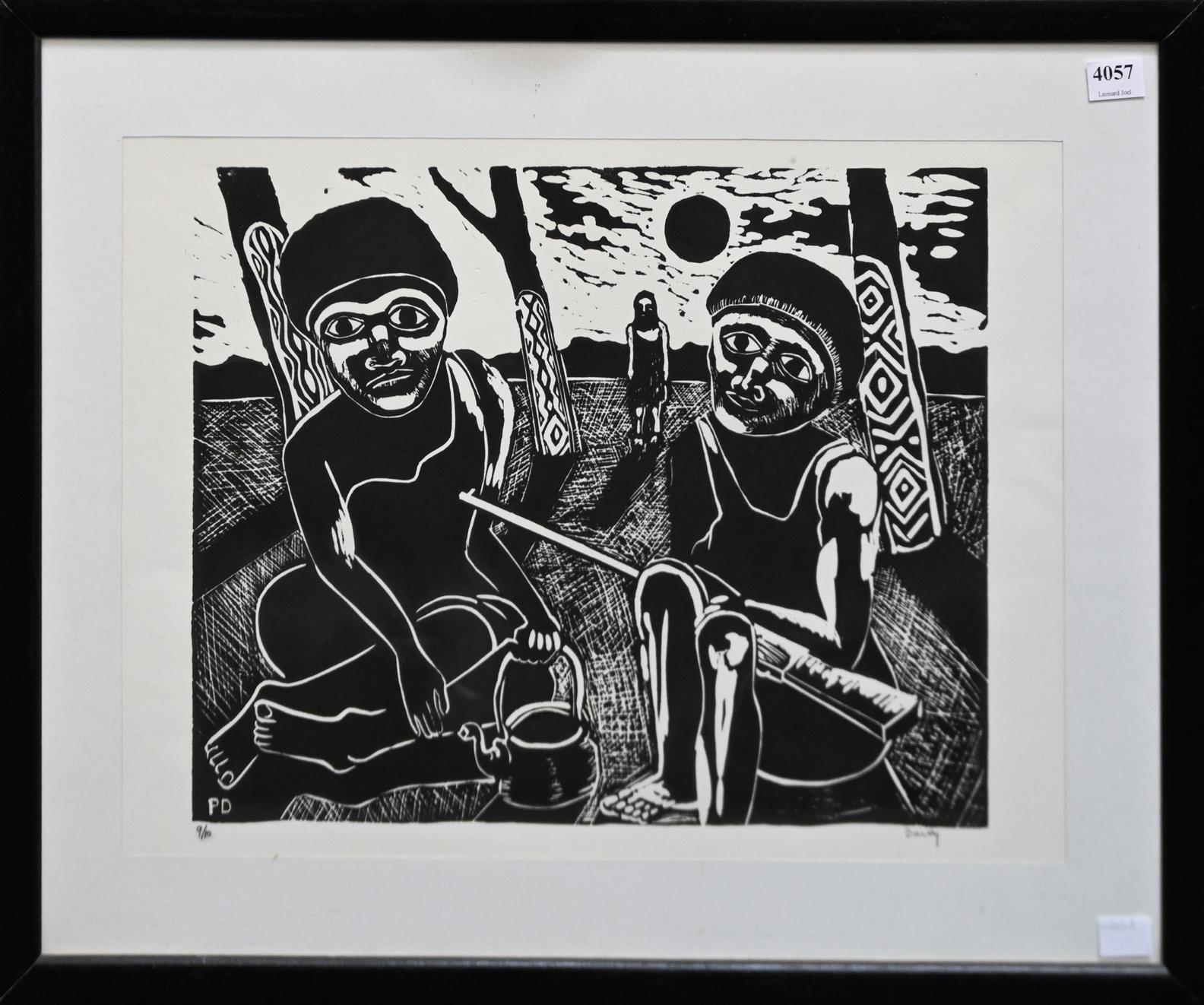 PHILIP DAVEY, (THREE FIGURES), LINOCUT ED. 9/10, SIGNED, EDITIONED BELOW IMAGE, 28.5 X 35.5CM, FRAME SIZE: 44 X 54CM