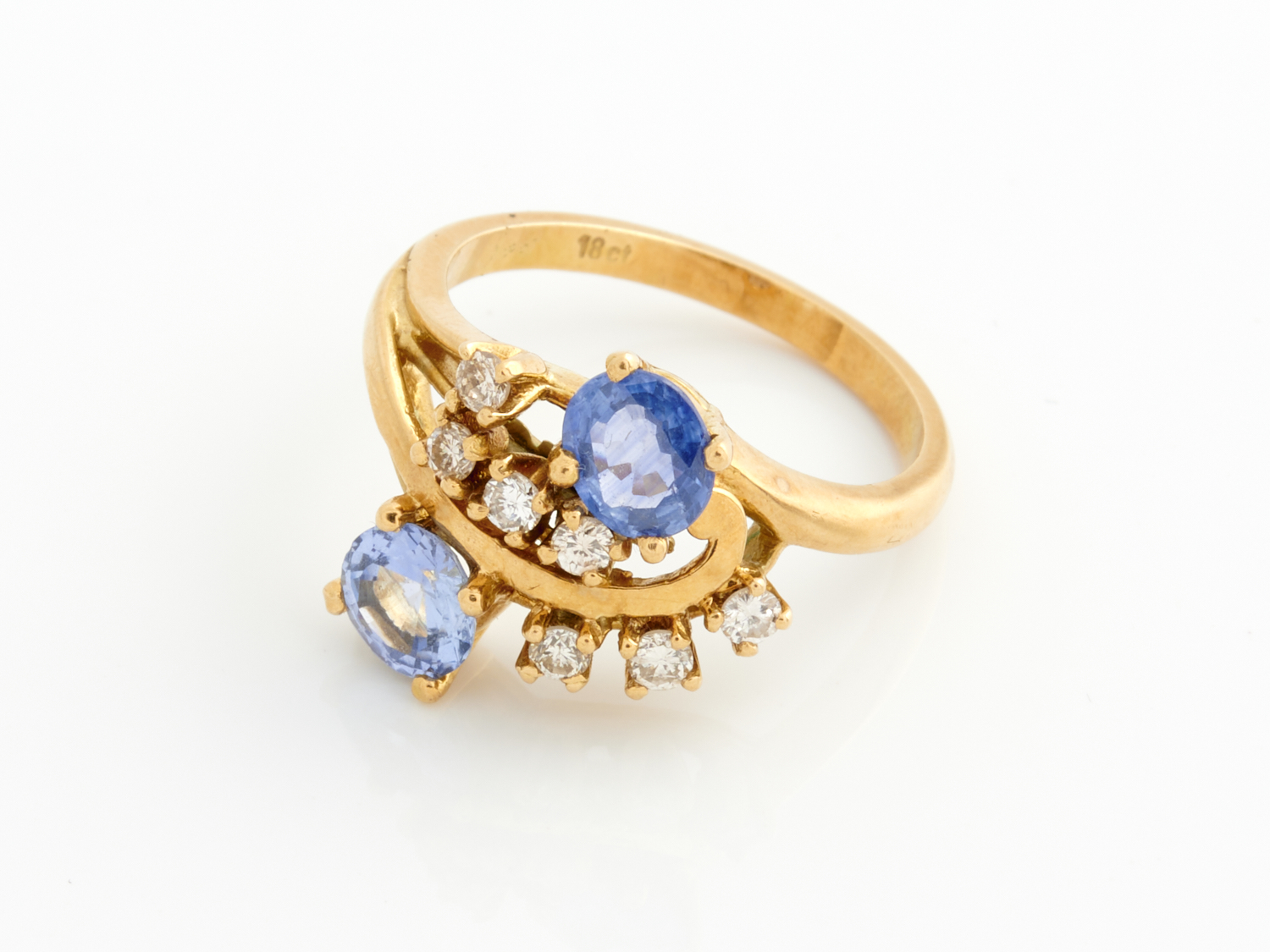 A DIAMOND AND SAPPHIRE RING IN 18CT GOLD, SIZE O, 5.8GMS