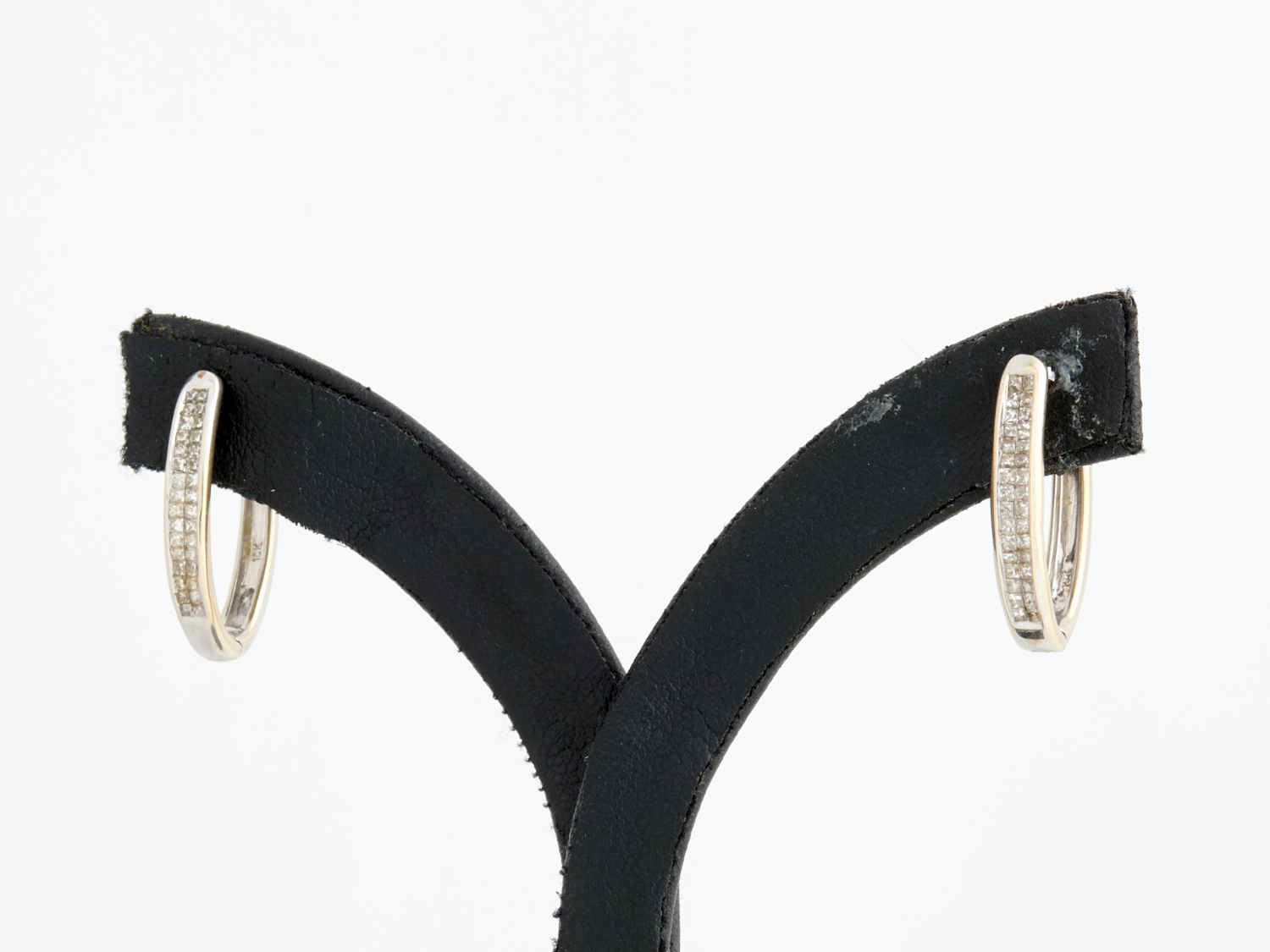 A PAIR OF DIAMOND SET HOOP EARRINGS IN 18CT GOLD, 22MM, 4.2GMS