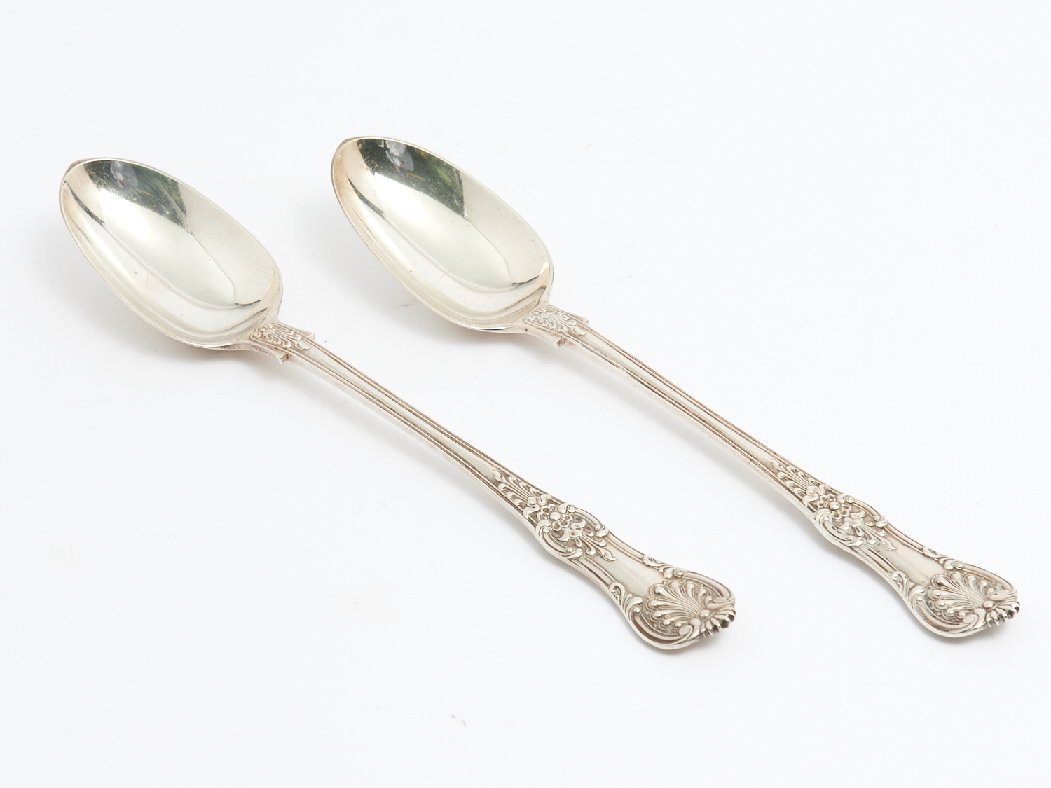 A PAIR OF KINGS PATTERN STERLING SILVER SERVING SPOONS, LONDON 1882, 436g L.31CM, LEONARD JOEL DELIVERY SIZE: SMALL