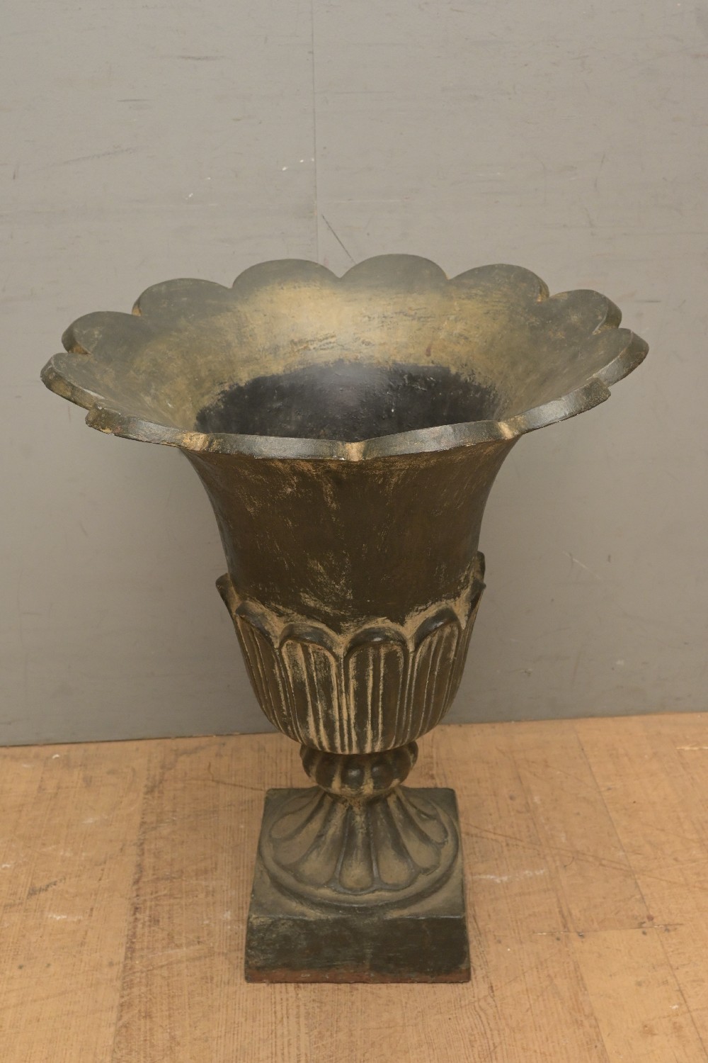 A SUBSTANTIAL CAST IRON FLUTED PLANTER (77H X 61DIAM CM) (PLEASE NOTE THIS HEAVY ITEM MUST BE REMOVED BY CARRIERS AT THE CUSTOMER'S EXPENSE. LEONARD JOEL STAFF CANNOT ASSIST CARRYING THIS ITEM) (X-LARGE ITEM)