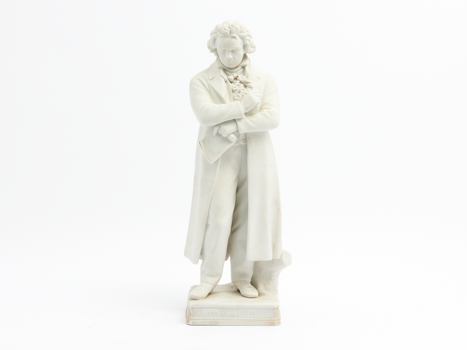 A 19TH CENTURY BISQUE FIGURE OF BEETHOVEN (A/F SMALL LOSS TO PENCIL) H.41CM, LEONARD JOEL DELIVERY SIZE: MEDIUM