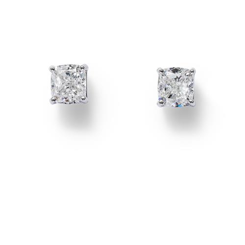 The cushion modified brilliant-cut diamonds weighing 1.51 carats and 1.50 carats respectively, are claw-set, mounted in 18ct white gold, post and scroll fittings.