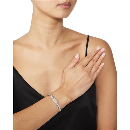 Composed of a line of 32 millégrain-set old European-cut diamonds, the outer edges embellished with foliate engraving, completed by a concealed box clasp, the diamonds together weighing approximately 5.50 carats, mounted in platinum, length 180mm.