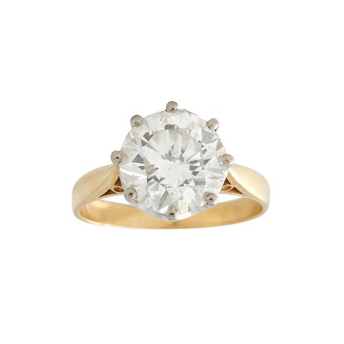 Claw-set with a brilliant-cut diamond weighing approximately 2.95 carats, size L.