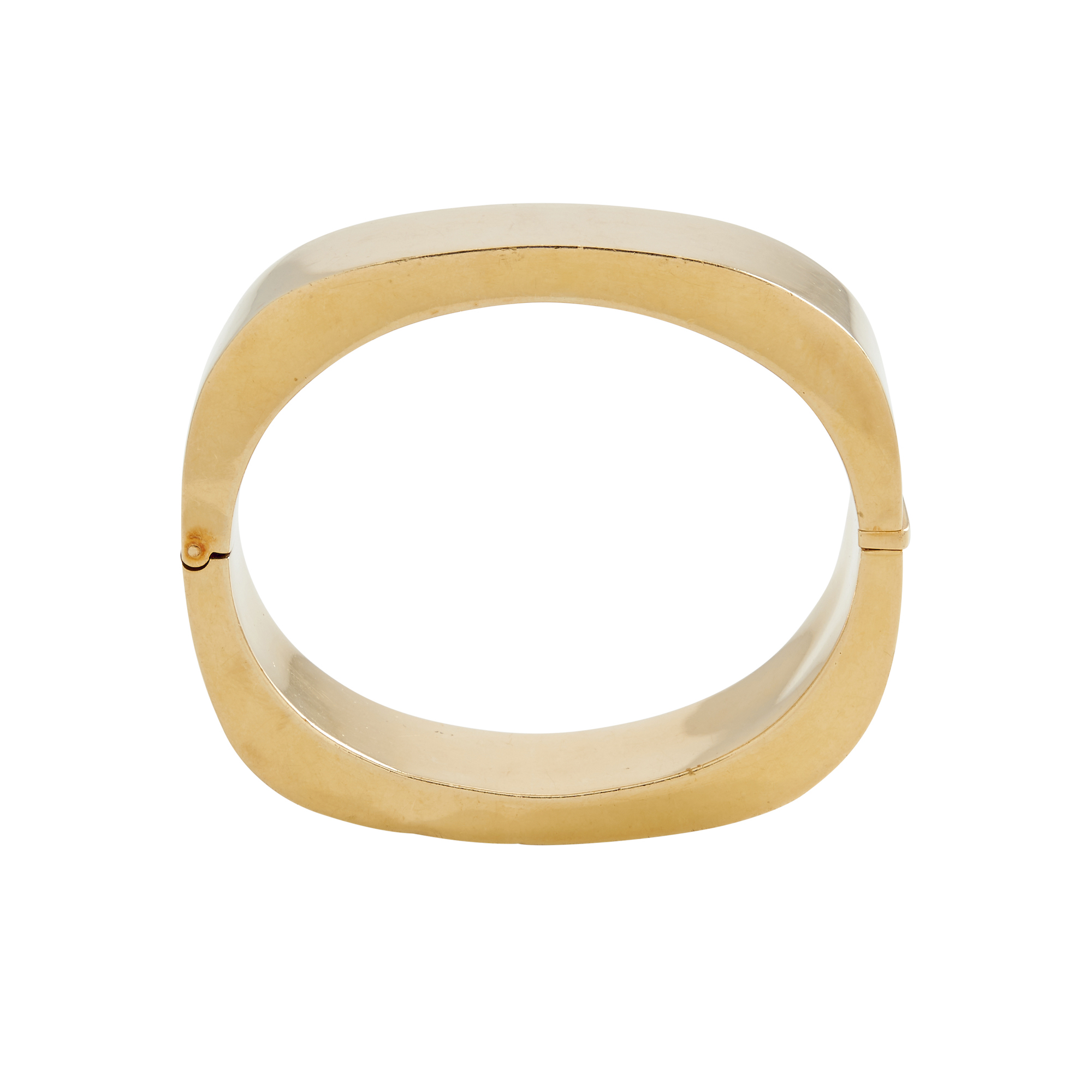 The hinged bangle, completed by a tongue and groove clasp, inner circumference 165mm, gross weight approximately 82.2 grams.