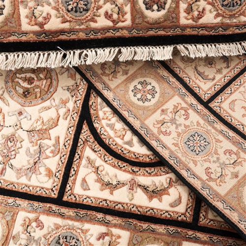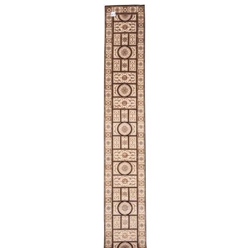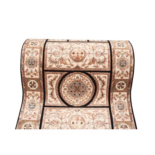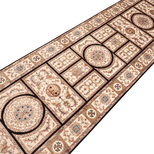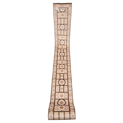 A NEW SUPERFINE, PALATIAL SIZE IMPERIAL VERSACE DESIGN RUG. HAND KNOTTED, 100% WOOL AND TENCEL SILKY TEXTURE. HAND CARVED WITH EMBOSSED SILK FLOWERS. IN ALL OVER NEUTRAL TONES WITH A TOUCH OF PEACH. SUPER SOLID WEAVE. SIZE: 806 X 79 CM - ORIGIN: JAIPUR - RRP: $9,800 DOCUMENTATION OF AUTHENTICITY INCLUDED.
