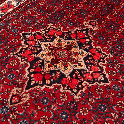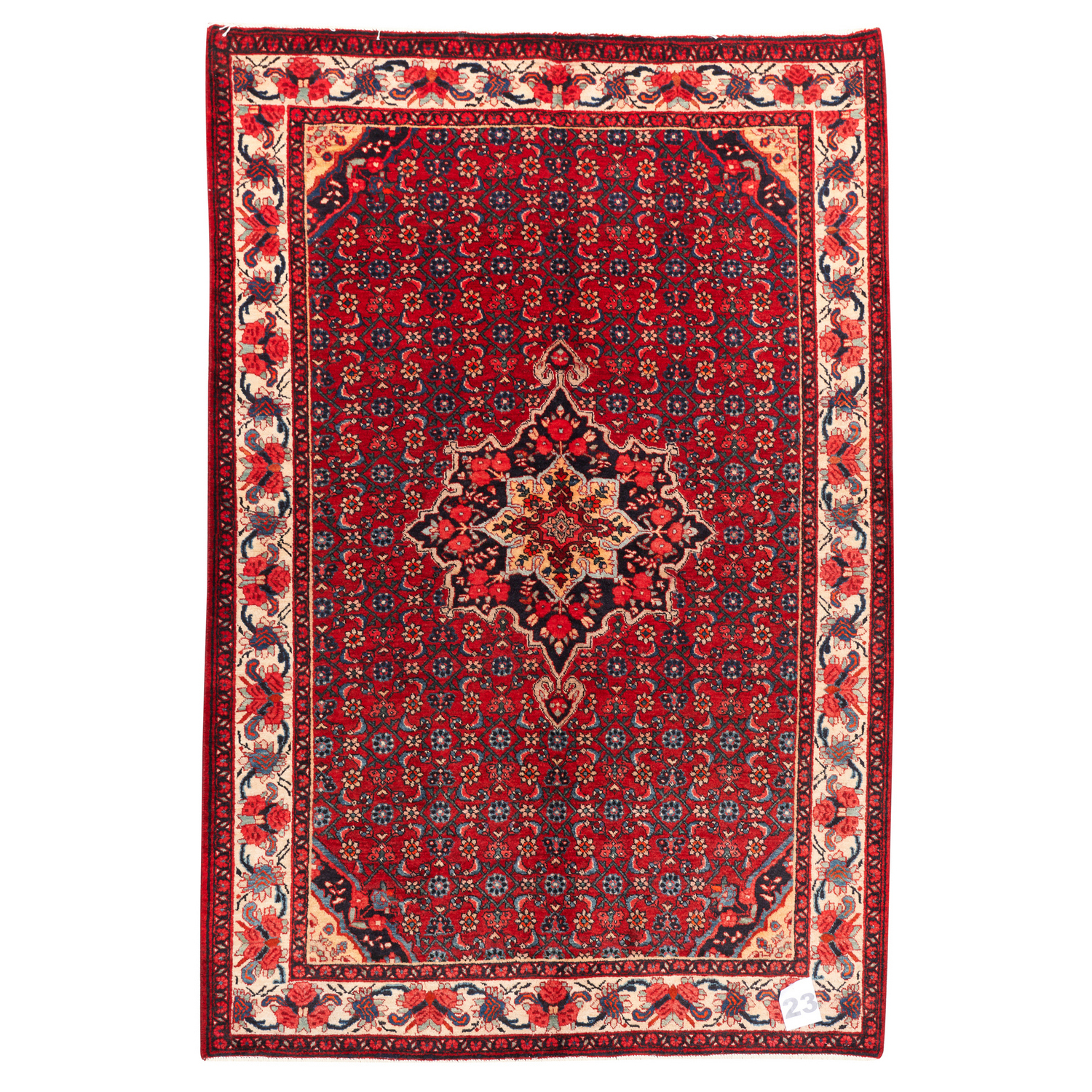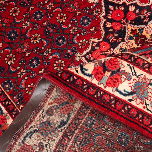 A SOLID PERSIAN BIDJAR GHOLTOGH, DENSELY HAND KNOTTED WOOL, WOVEN IN THE KURDISH PROVINCE OF KURDISTAN IN PERSIA. 100% WOOLLEN PILE AND ALL NATURAL DYES. CENTRAL FLORAL MEDALLION ON A FIELD OF HERATI MOTIFS. SHEEN TO THE WOOL. SIZE: 202 X 135 CM ORIGIN: PERSIA - RRP: $2,300 DOCUMENTATION OF AUTHENTICITY INCLUDED.