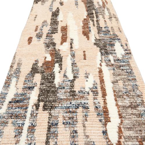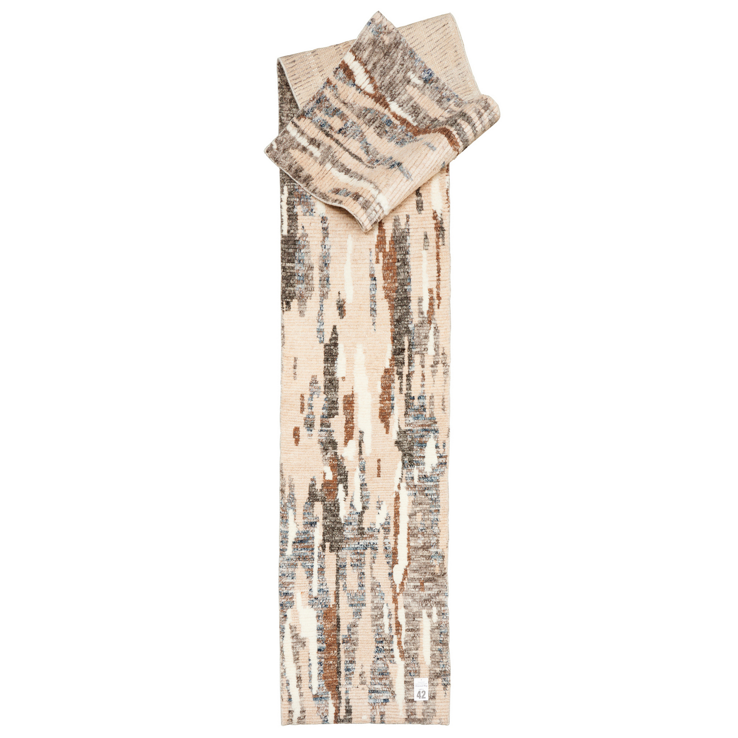 A BRAND-NEW HAND-WOVEN MOROCCAN BERBER STYLE DESIGNER RUG. IN TONES OF GREY, BROWN; CREAM. SIZE: 492 X 85 CM ORIGIN: INDIA RRP: $1,400 DOCUMENTATION OF AUTHENTICITY INCLUDED.