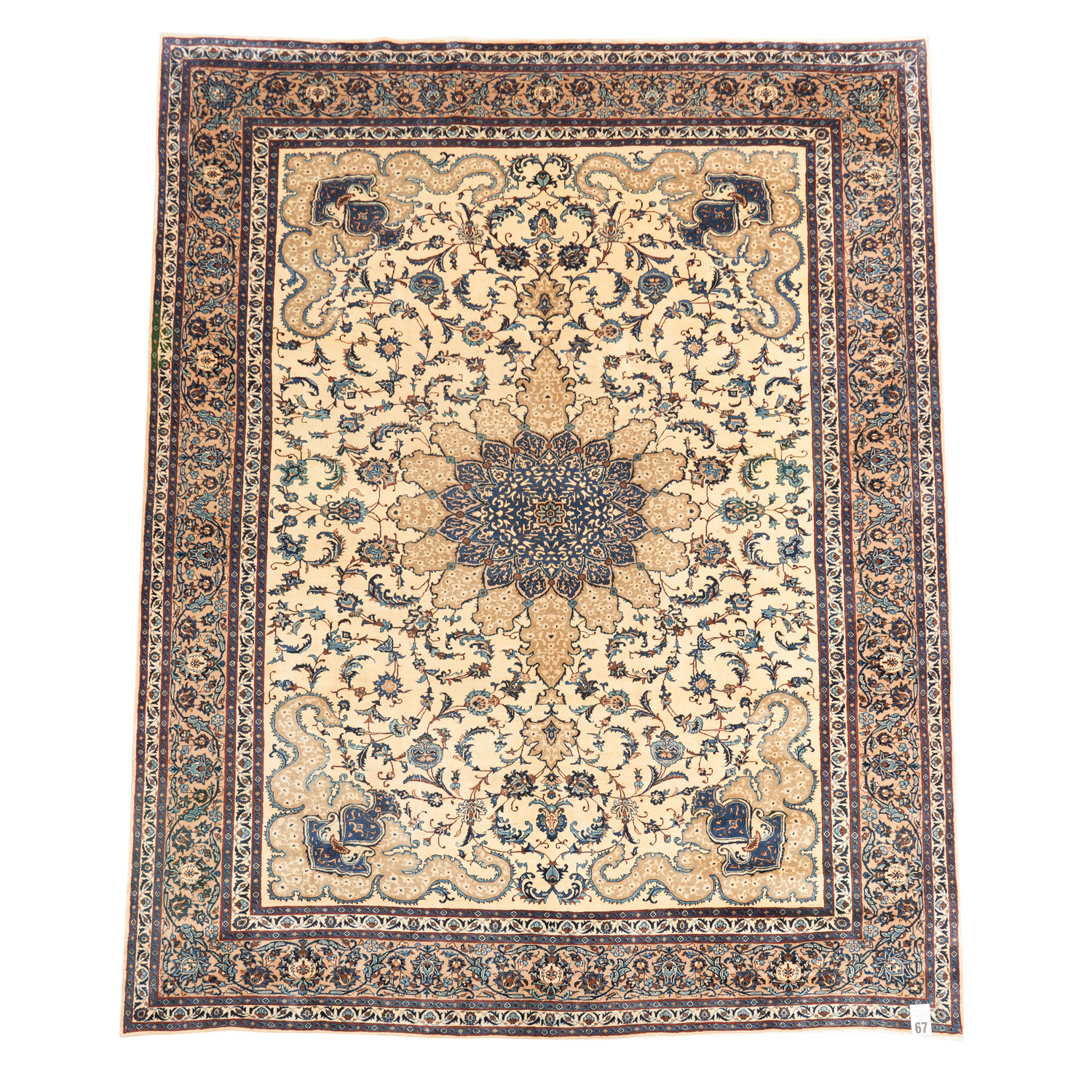 A WORLD CLASS PERSIAN ISFAHAN RUG, 100% FINELY HAND KNOTTED WITH THE FINEST LAMBS WOOL AND SILK INLAYS. APPROXIMATELY 750,000 KNOTS...