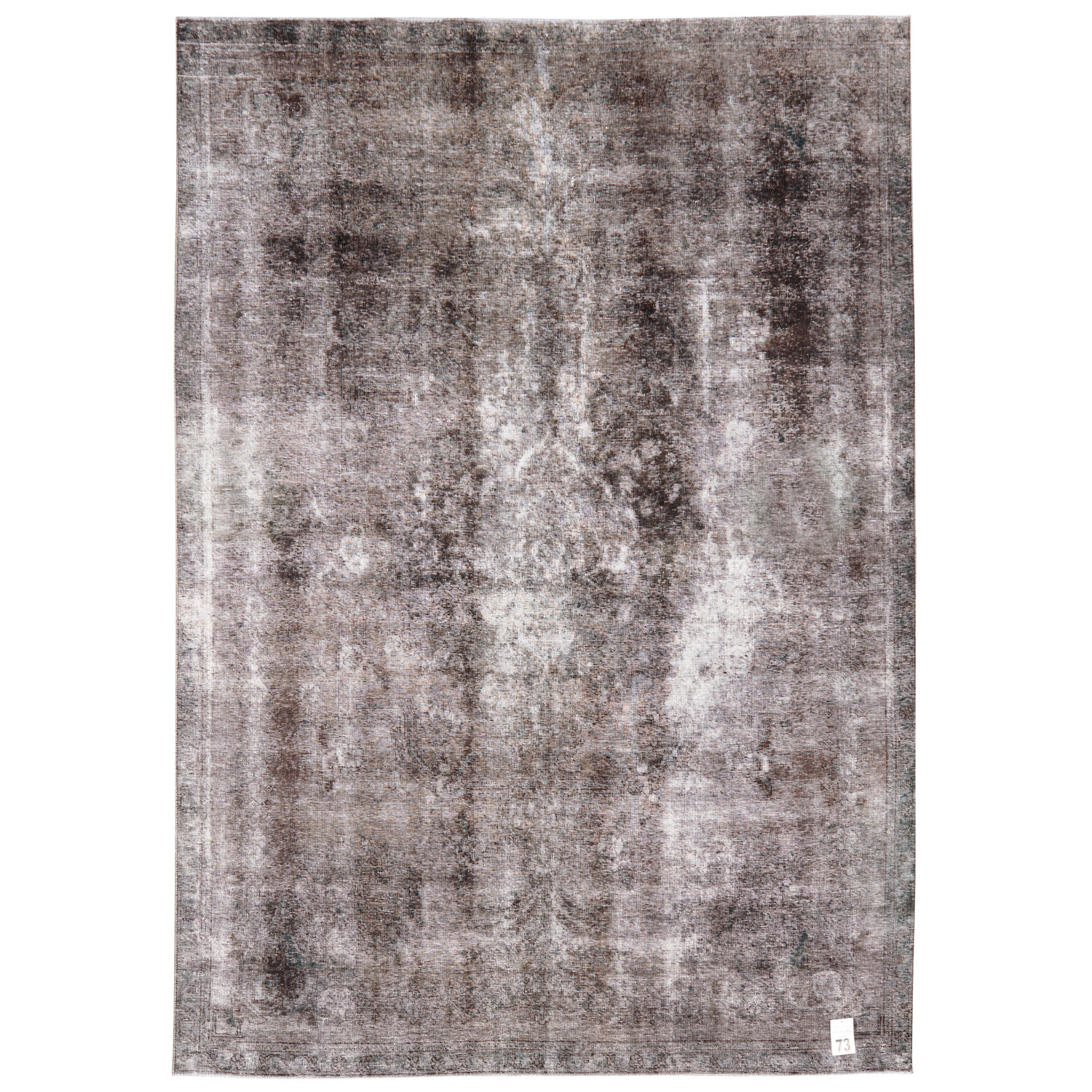 A VINTAGE OVER-DYED PERSIAN TABRIZ CARPET, 100% WOOL. A UNIQUE MODERN CARPET CREATED FROM AN AUTHENTIC VINTAGE TABRIZ CARPET WITH THE PILE STONE WASHED AND OVER-DYED IN CHARCOAL, SILVER, AND TAUPE HIGHLIGHTS. SIZE: 320 X 224 CM ORIGIN: PERSIA - RRP: $2,800 DOCUMENTATION OF AUTHENTICITY INCLUDED