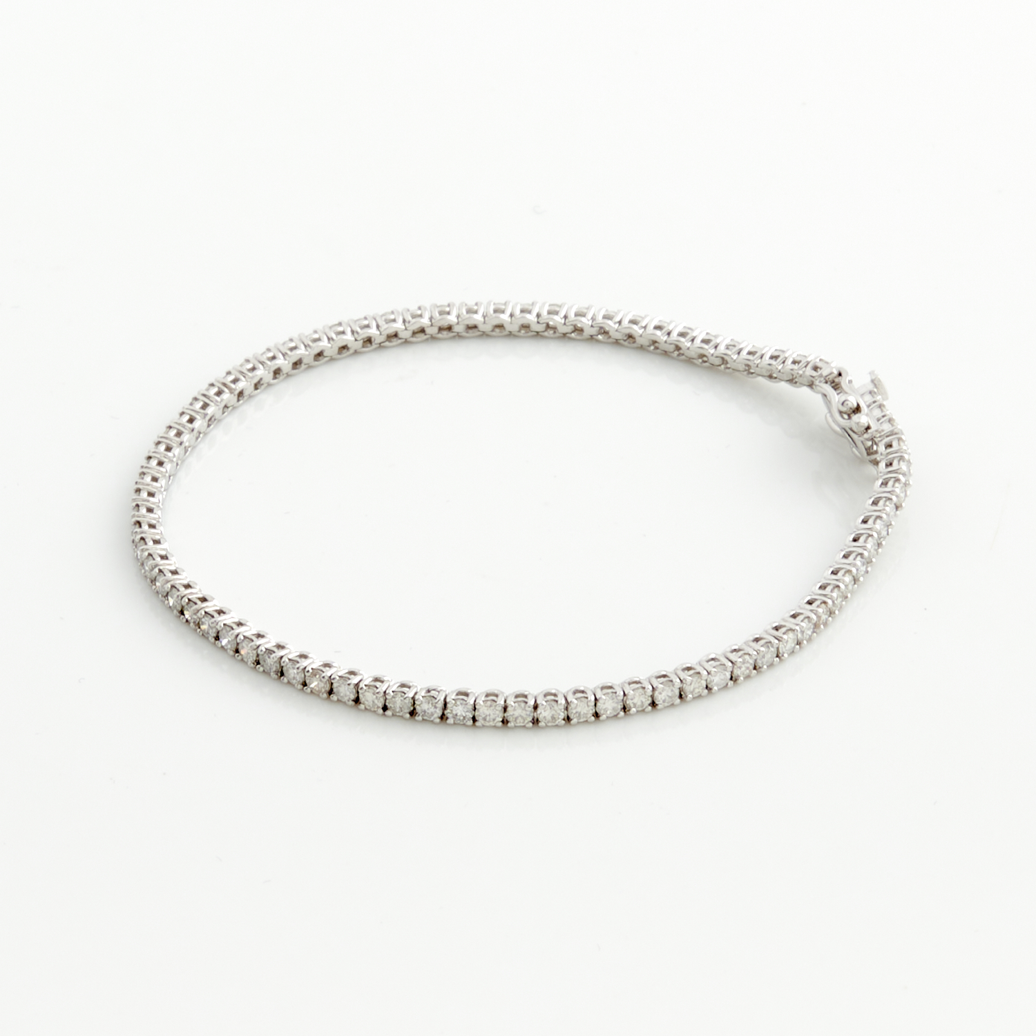 A DIAMOND LINE BRACELET IN 18CT WHITE GOLD, THE DIAMONDS TOTALLING 3.22CTS, 180MM