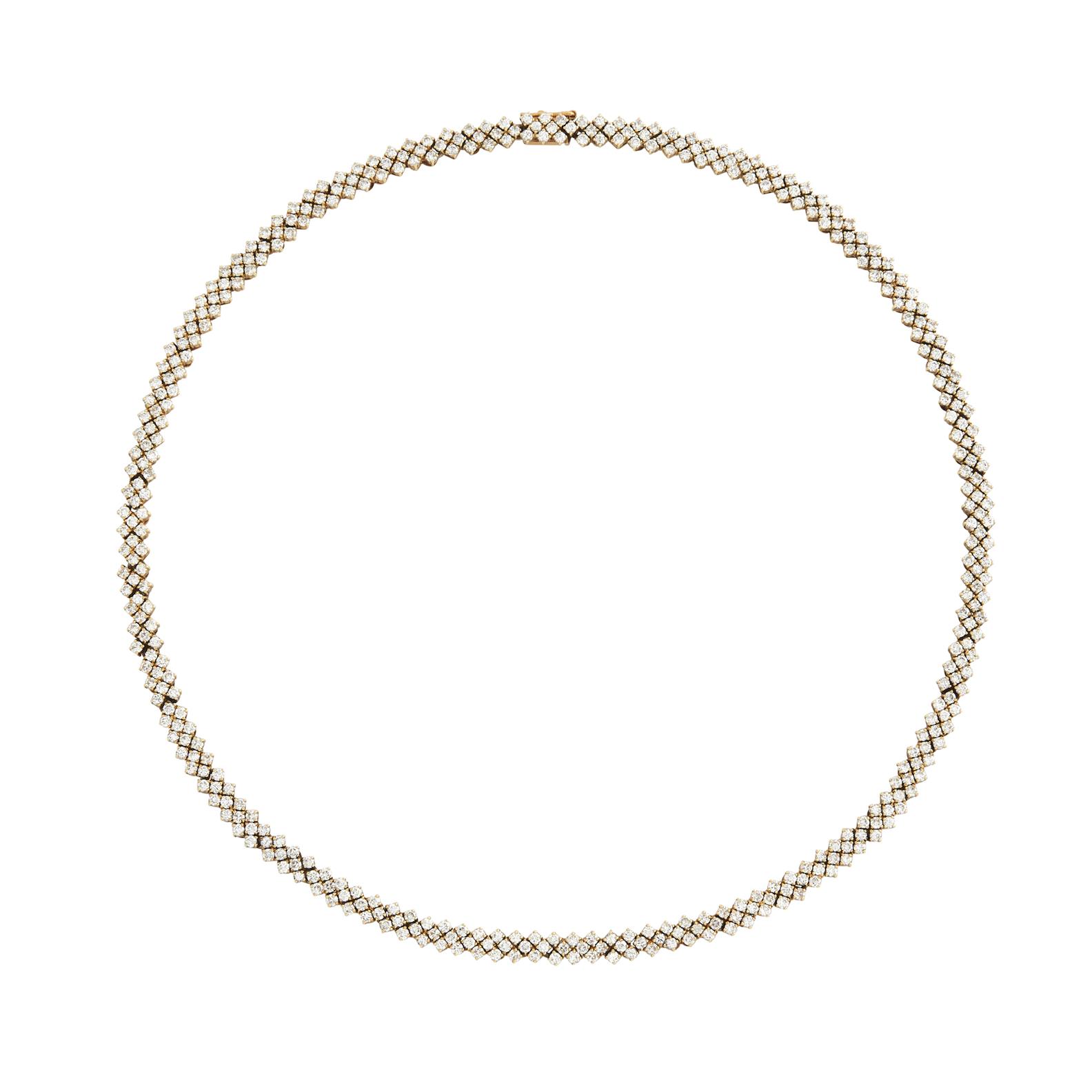 Claw-set with brilliant-cut diamonds together weighing approximately 4.00 carats, completed by a tongue and groove clasp, length 390mm, gross weight 29.6 grams.