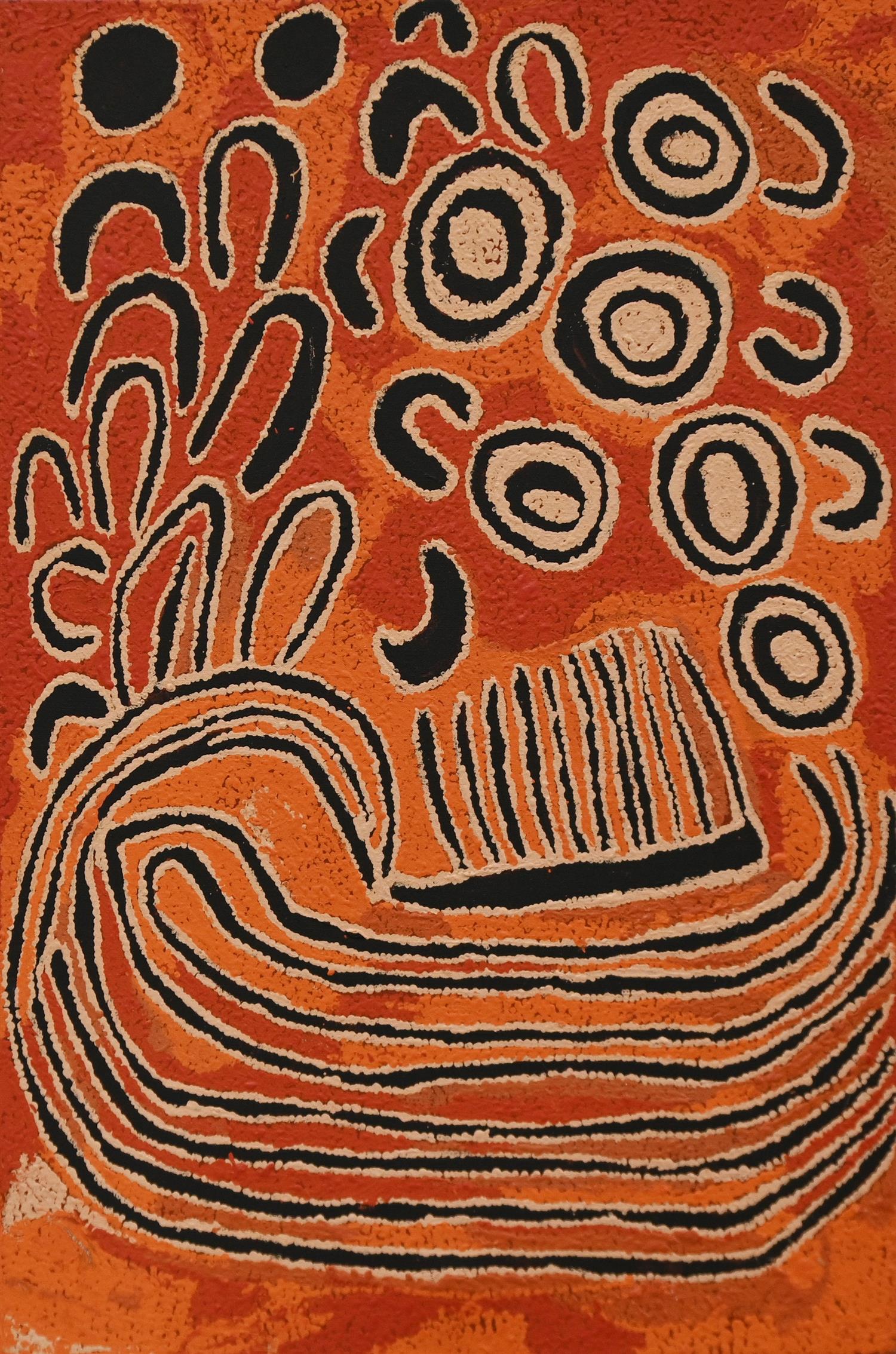 TJUNKIYA NAPALTJARRI, UNTITLED, SYNTHETIC POLYMER PAINT ON CANVAS, INSCRIBED VERSO WITH ARTIST'S NAME AND PAPUNYA TULA CAT. NO. TN 9909220, 90.5 X 61CM