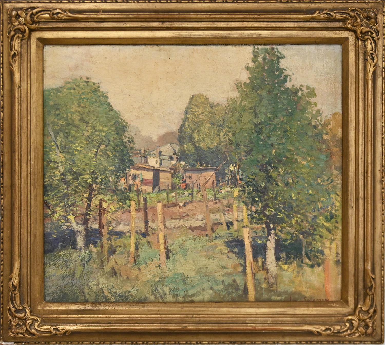 LANCE SOLOMON, LANDSCAPE, OIL ON BOARD, SIGNED LOWER RIGHT, 38 X 43.5CM, FRAME SIZE: 51 X 58CM