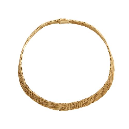 Composed of fancy links, completed by a tongue and groove clasp, length 430mm, gross weight 76.5 grams.