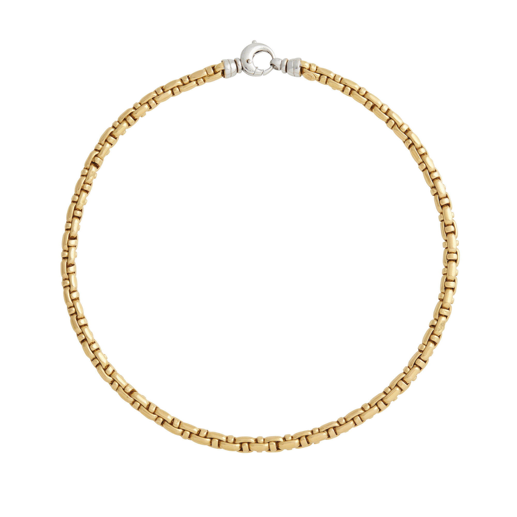The fancy link chain completed by a parrot clasp, length 450mm, gross weight 42.2 grams.