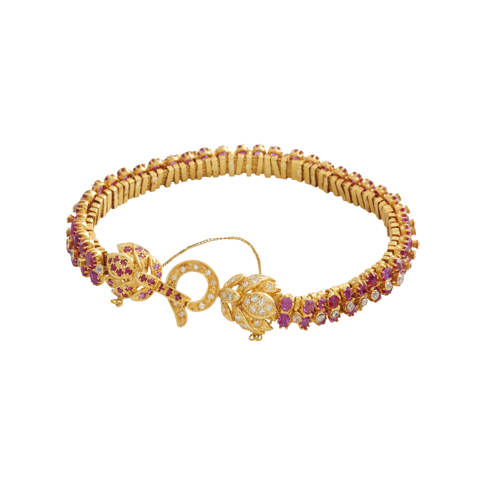 22CT GOLD, RUBY AND DIAMOND BRACELET