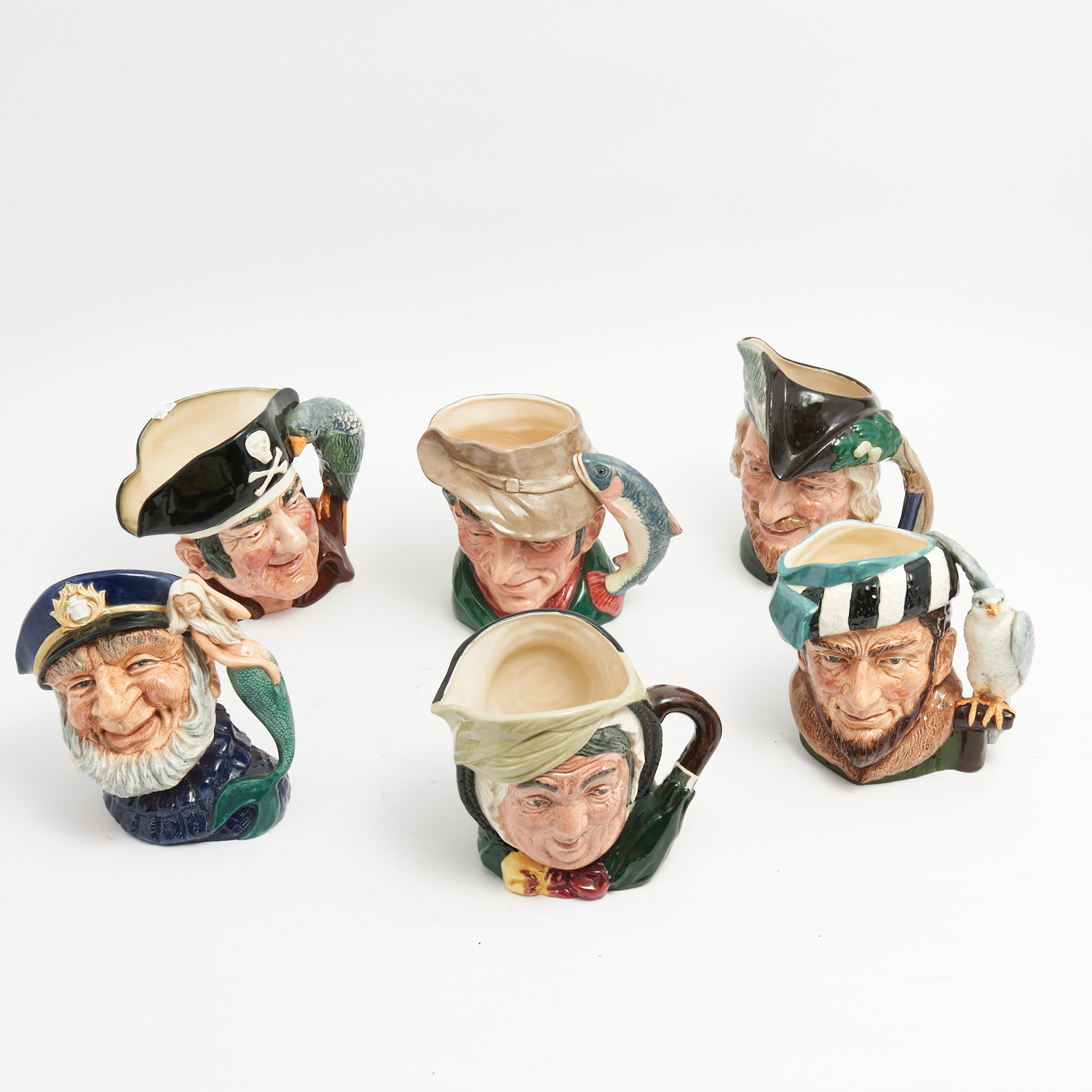 A COLLECTION OF SIX VINTAGE ROYAL DOULTON LARGE SIZE CHARACTER JUGS H.19CM (TALLEST), LEONARD JOEL DELIVERY SIZE: LARGE