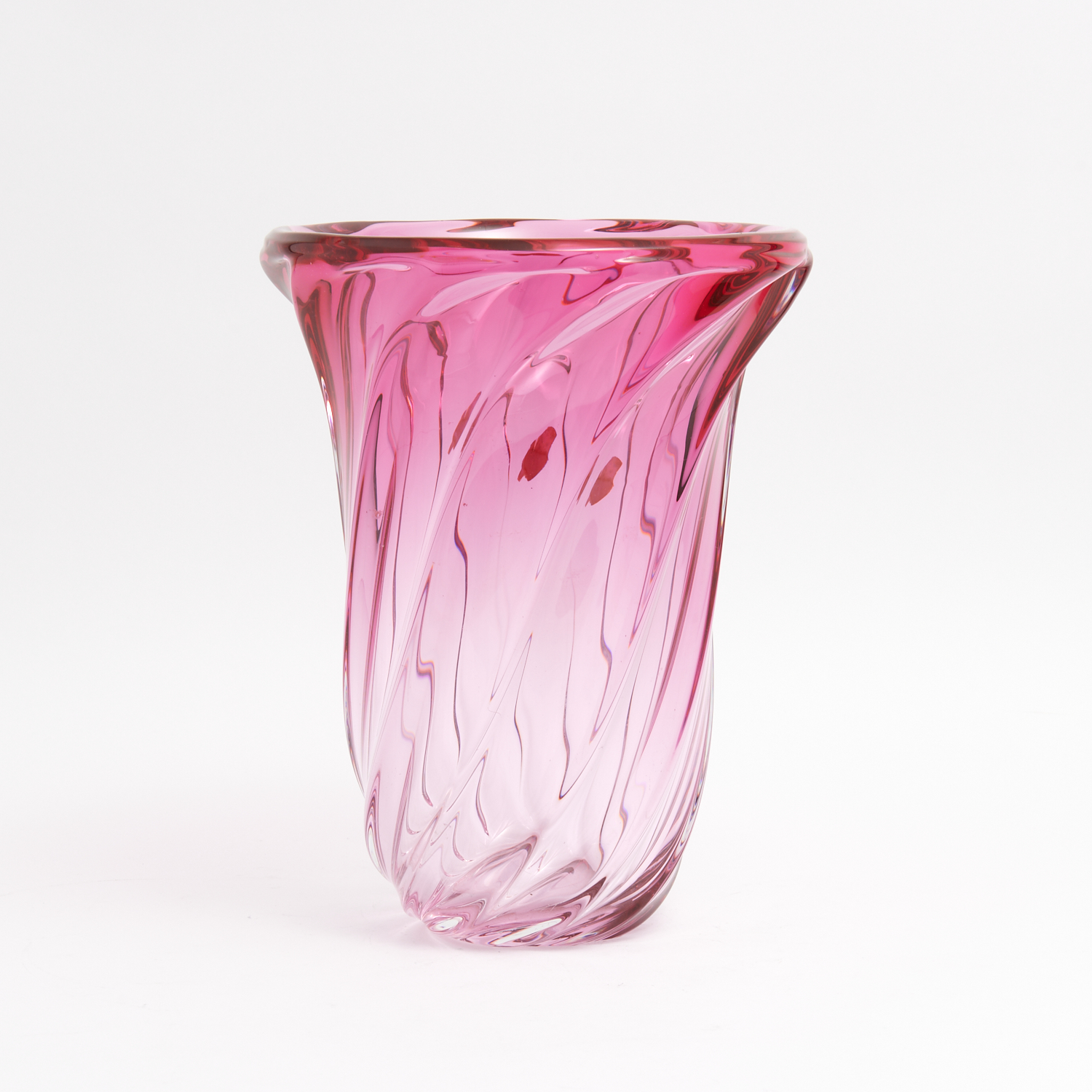 A LARGE AND IMPRESSIVE SIGNED AND WITH ORIGINAL LABEL VAL ST LAMBERT PINK VASE H.28CM, LEONARD JOEL DELIVERY SIZE: MEDIUM