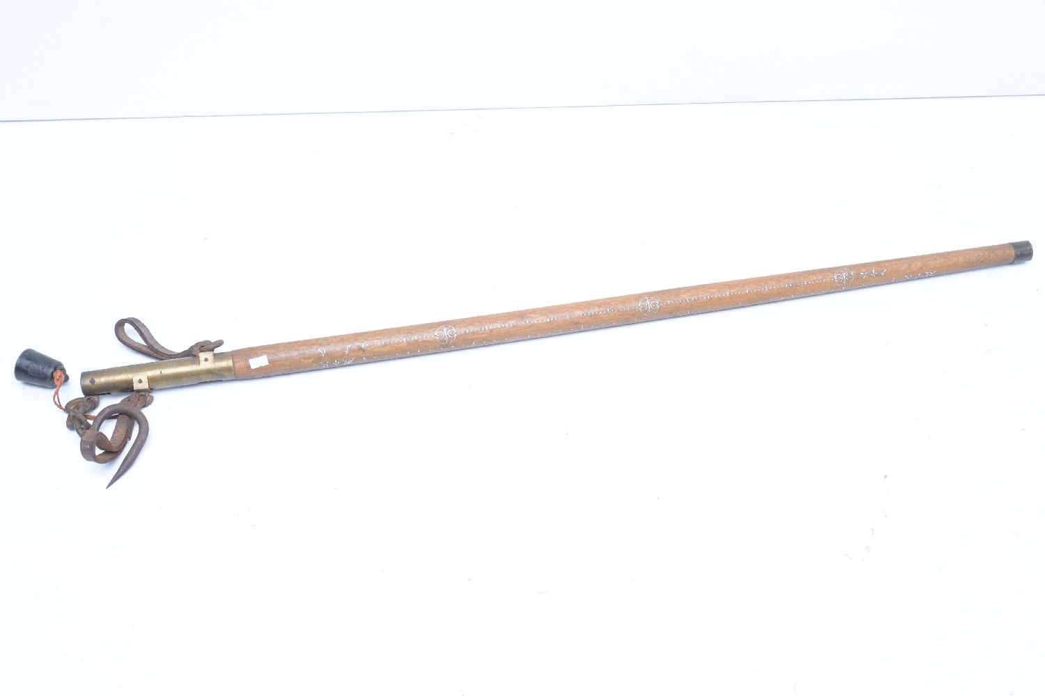 A SET OF UNUSUAL 19TH CENTURY CHINESE GOLDFIELDS ERA BRASS AND INLAID SILVER WOODEN BALANCE SCALES (124W CM) (LEONARD JOEL DELIVERY SIZE: LARGE)