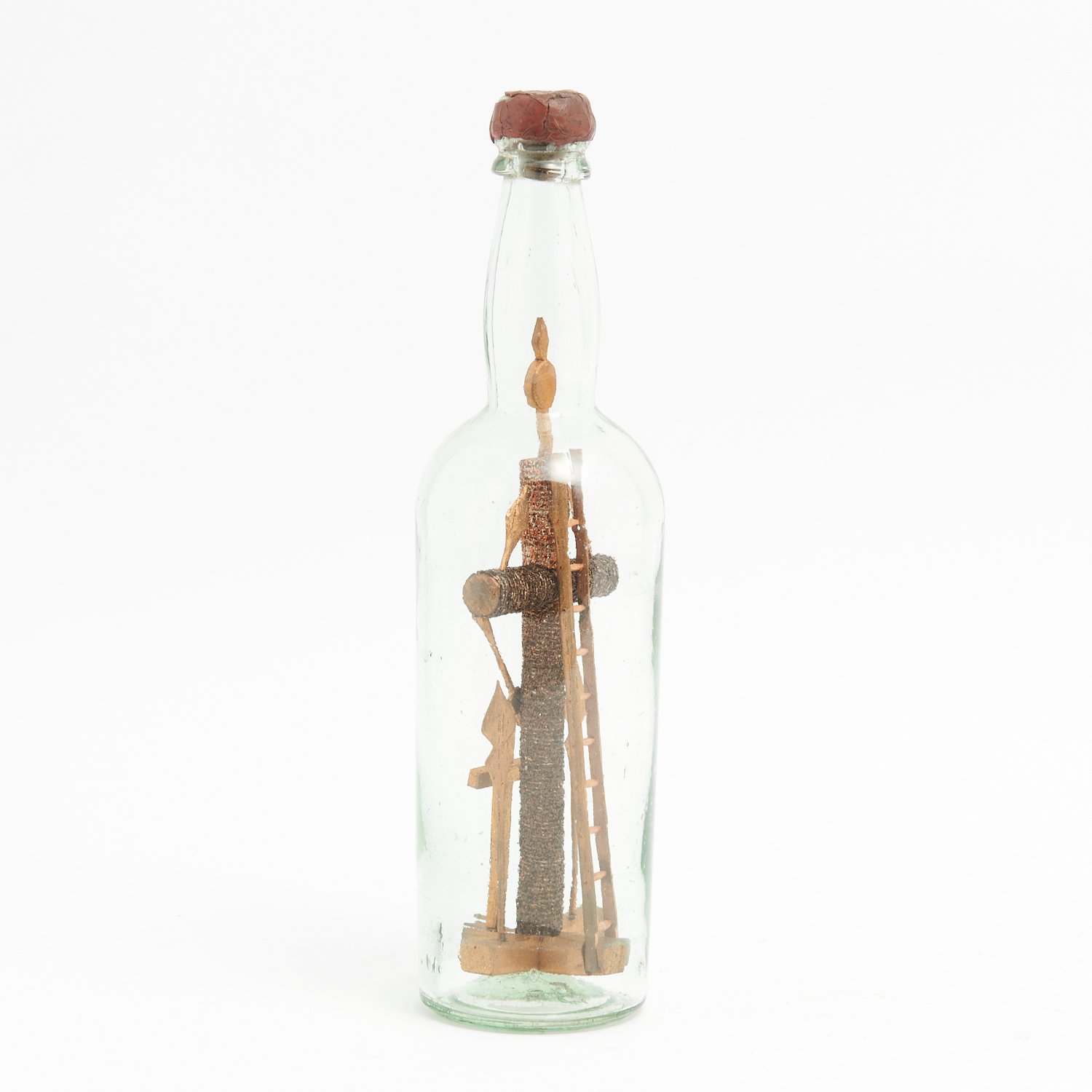 A RARE 19TH CENTURY SAILOR'S WHIMSICAL RELIGIOUS CRUCIFIX IN BOTTLE H.29CM, LEONARD JOEL DELIVERY SIZE: SMALL