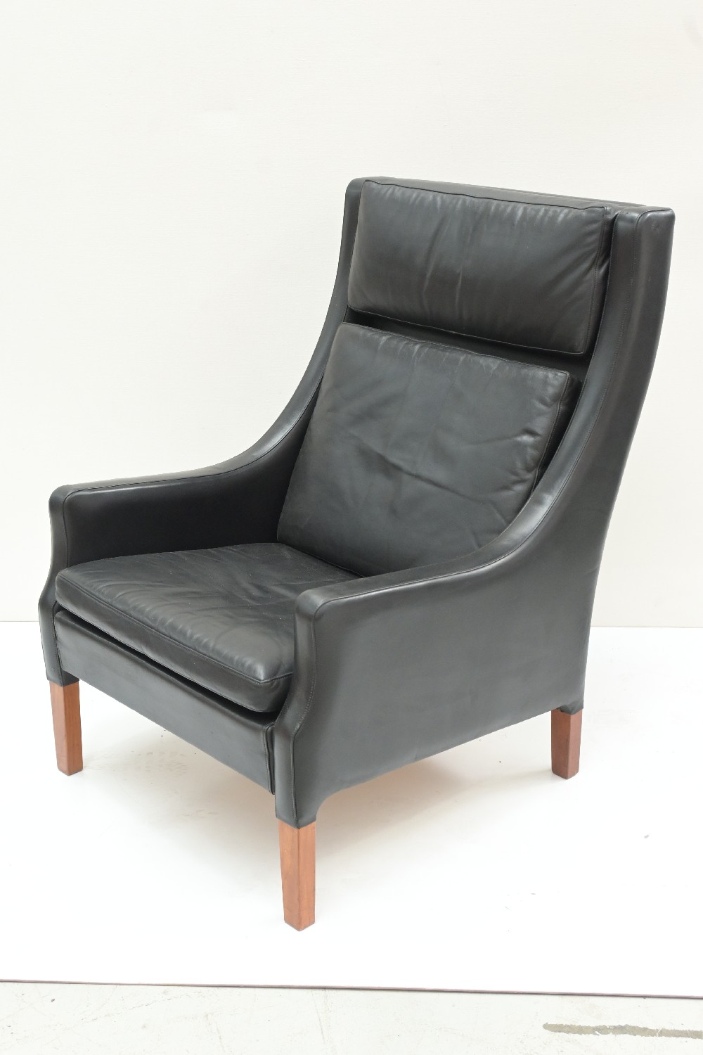 A DANISH BLACK LEATHER HIGHBACK CHAIR (98H X 69W X 84D CM) (LEONARD JOEL DELIVERY: X-LARGE)