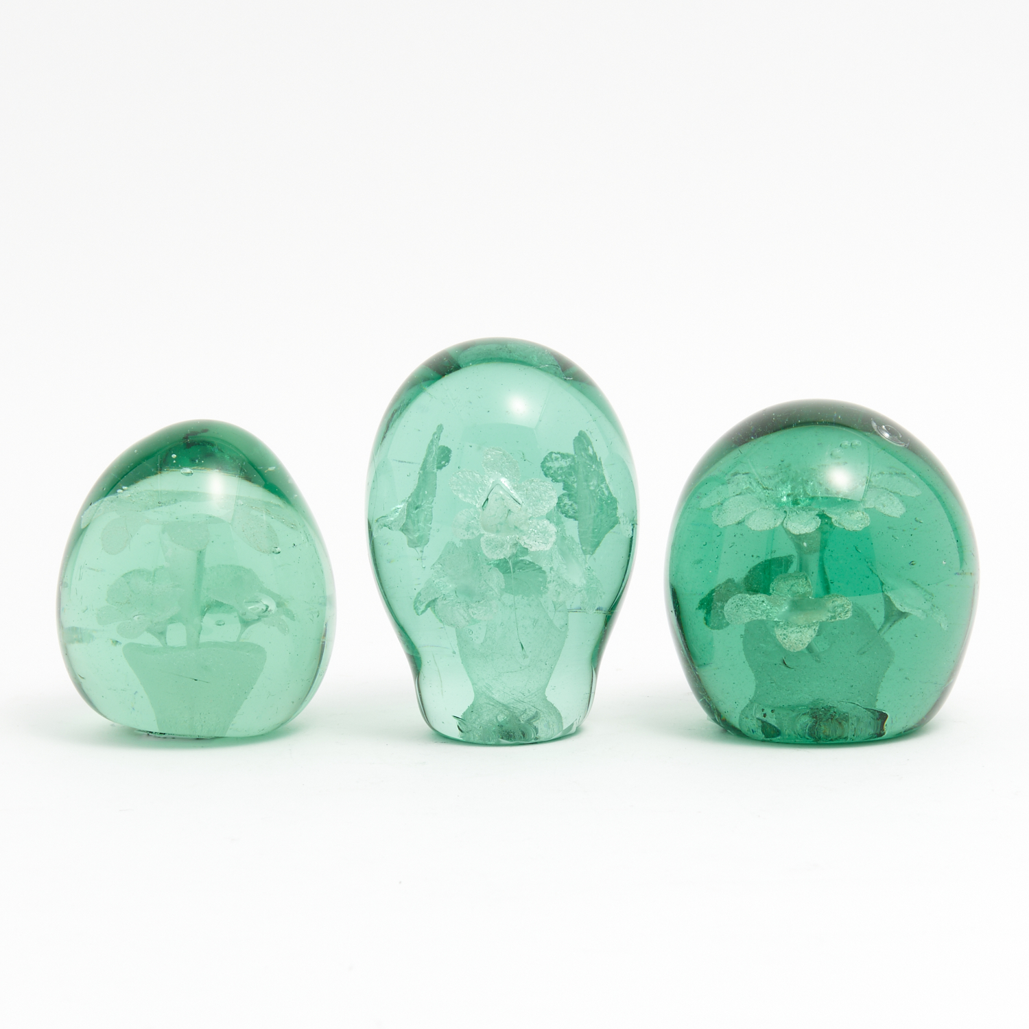 THREE GOOD SMALL FLORAL DUMPS, ONE WITH A CENTRAL DAISY ABOVE SMALL FLOWERS IN A POT, ONE WITH SIX SILVER FOIL FLOWERS AND THE OTHER WITH CHALK BUBBLE FLOWERS H.10CM (TALLEST), LEONARD JOEL DELIVERY SIZE: MEDIUM