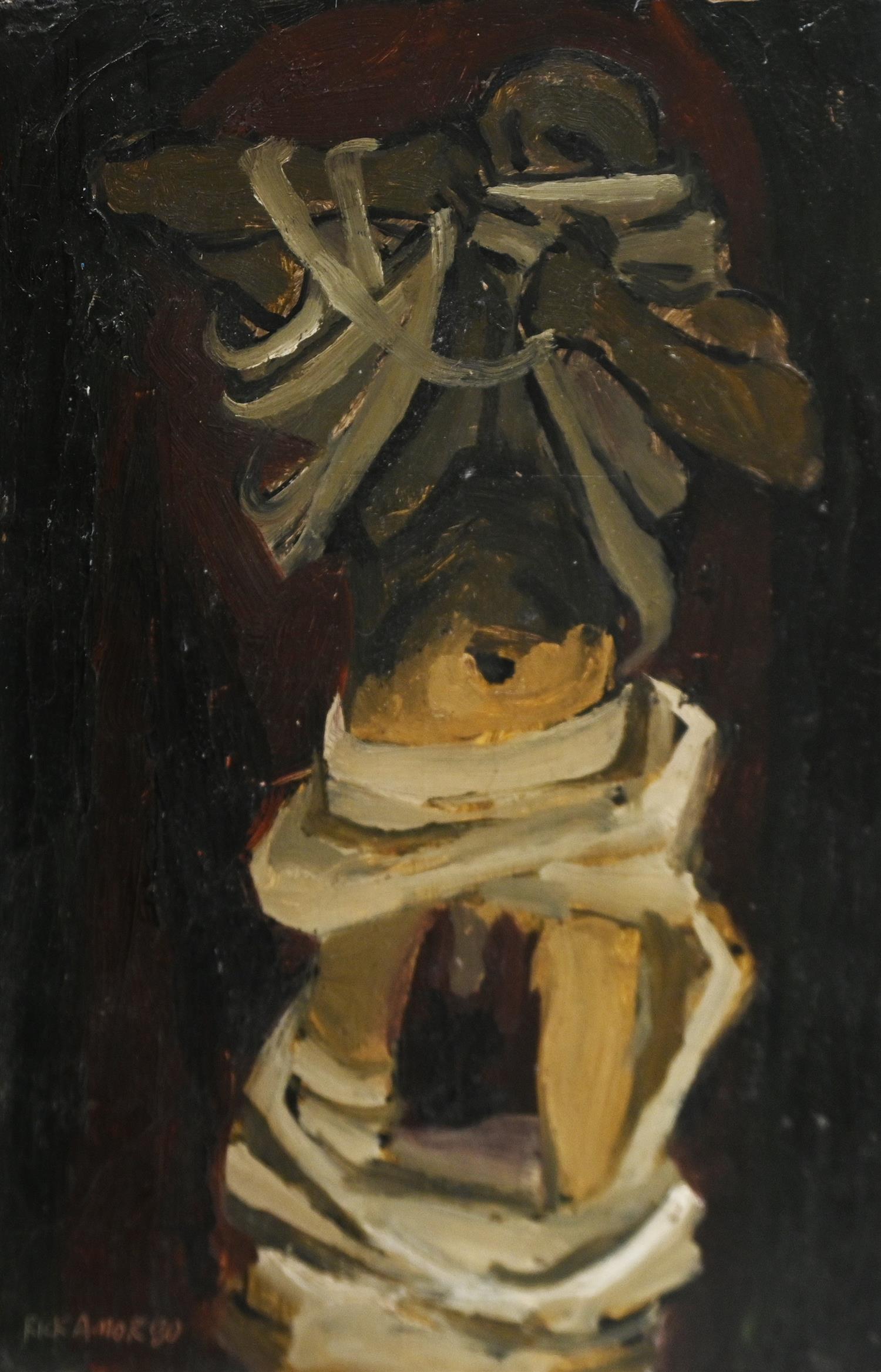 RICK AMOR, UNTITLED (FIGURE) 1980, OIL ON MASONITE, SIGNED AND DATED LOWER LEFT, 30.5 X 20CM