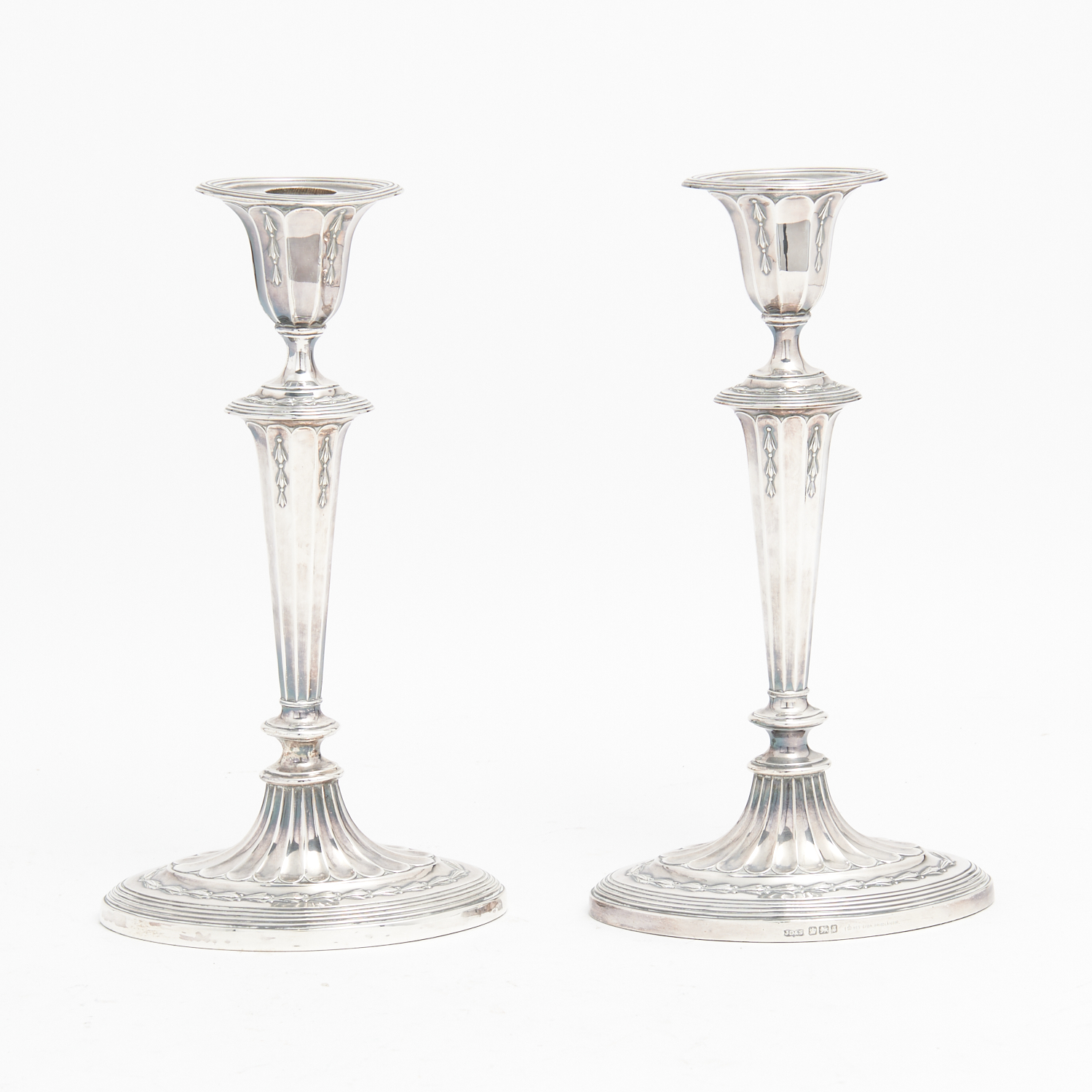 A PAIR OF WEIGHTED STERLING SILVER CANDLESTICKS ON OVAL BASES, MARKED FRIEDLANDER H.25CM, LEONARD JOEL DELIVERY SIZE: SMALL