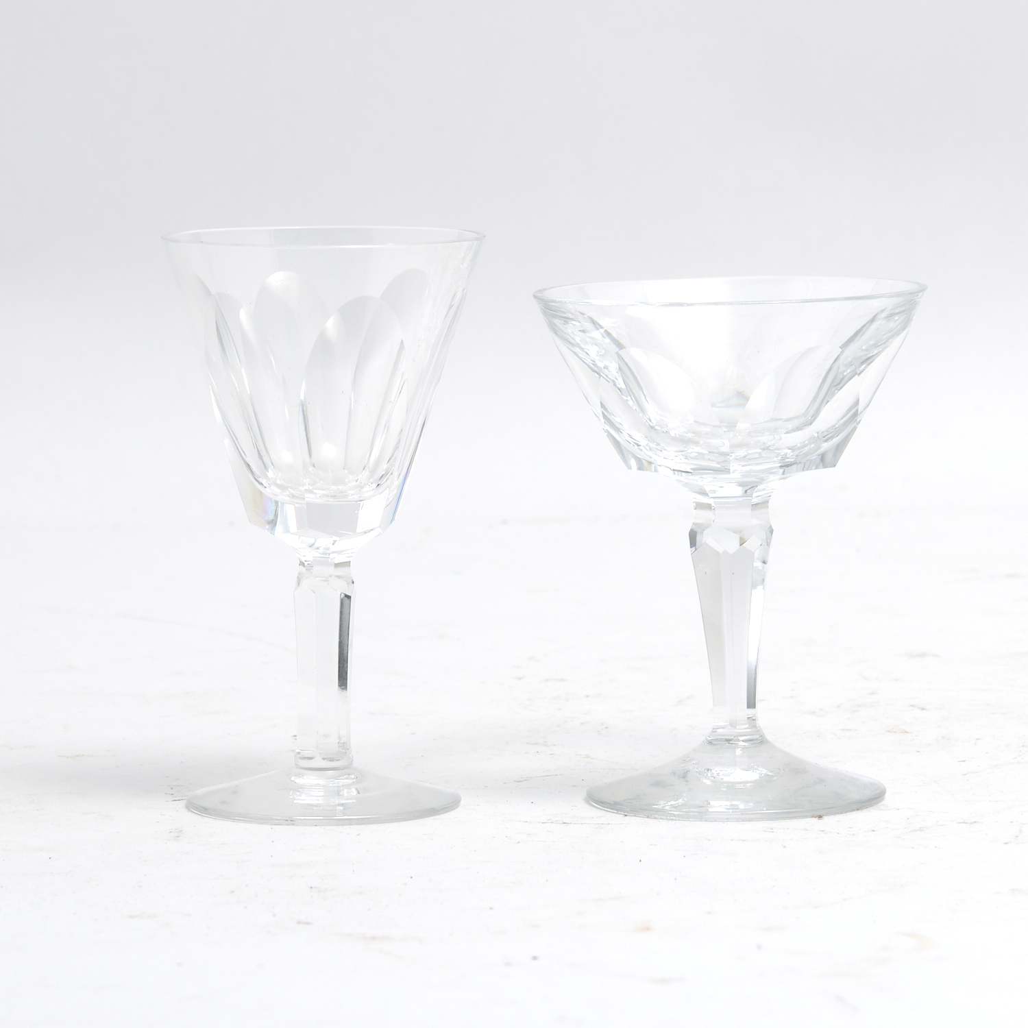 A SET OF TEN WATERFORD CRYSTAL SHEILA PATTERN SHERRIES TOGETHER WITH ANOTHER SET OF SIX SIMILAR UNMARKED SHERRIES H.10.5CM (TALLEST), LEONARD JOEL DELIVERY SIZE: MEDIUM