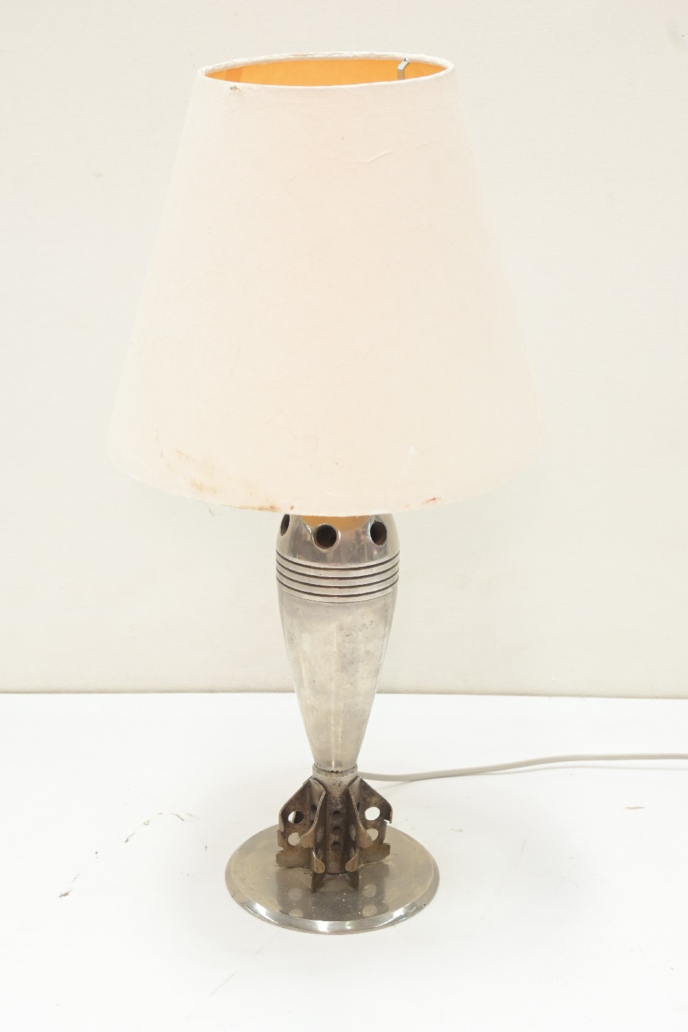 A DANISH MID-CENTURY BRUTALIST STYLE ROCKET FORM TABLE LAMP (A/F) (55H X 28DIA CM) (LEONARD JOEL DELIVERY SIZE: LARGE)
