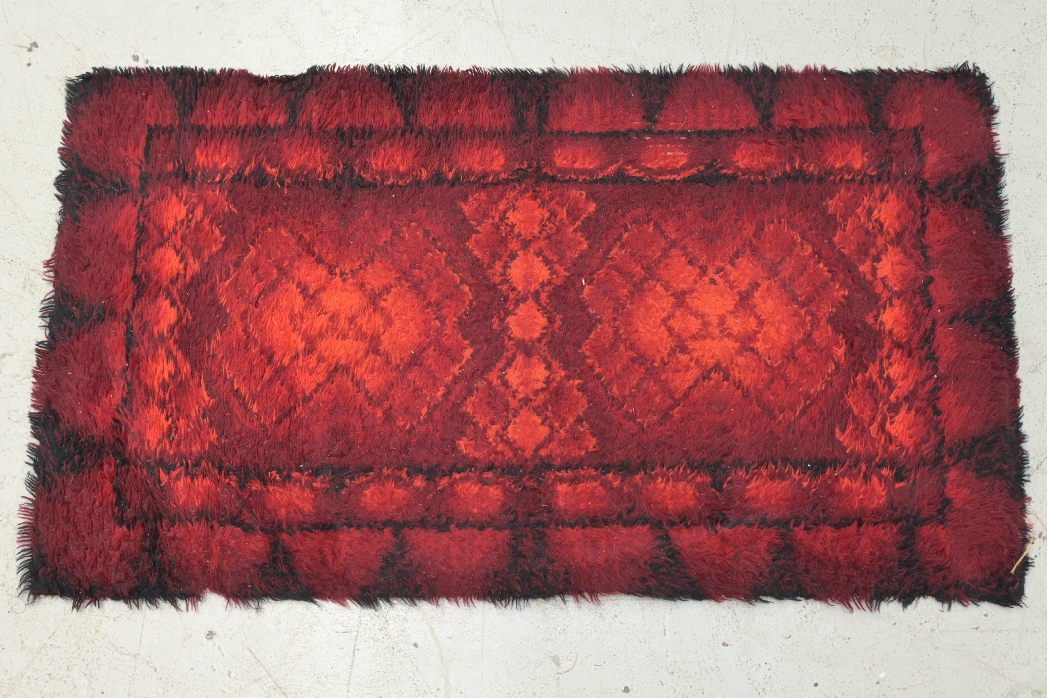 A DANISH MID-CENTURY WOOLEN SHAG PILE RUG (A/F) (124 X 70 CM) (LEONARD JOEL DELIVERY: LARGE)
