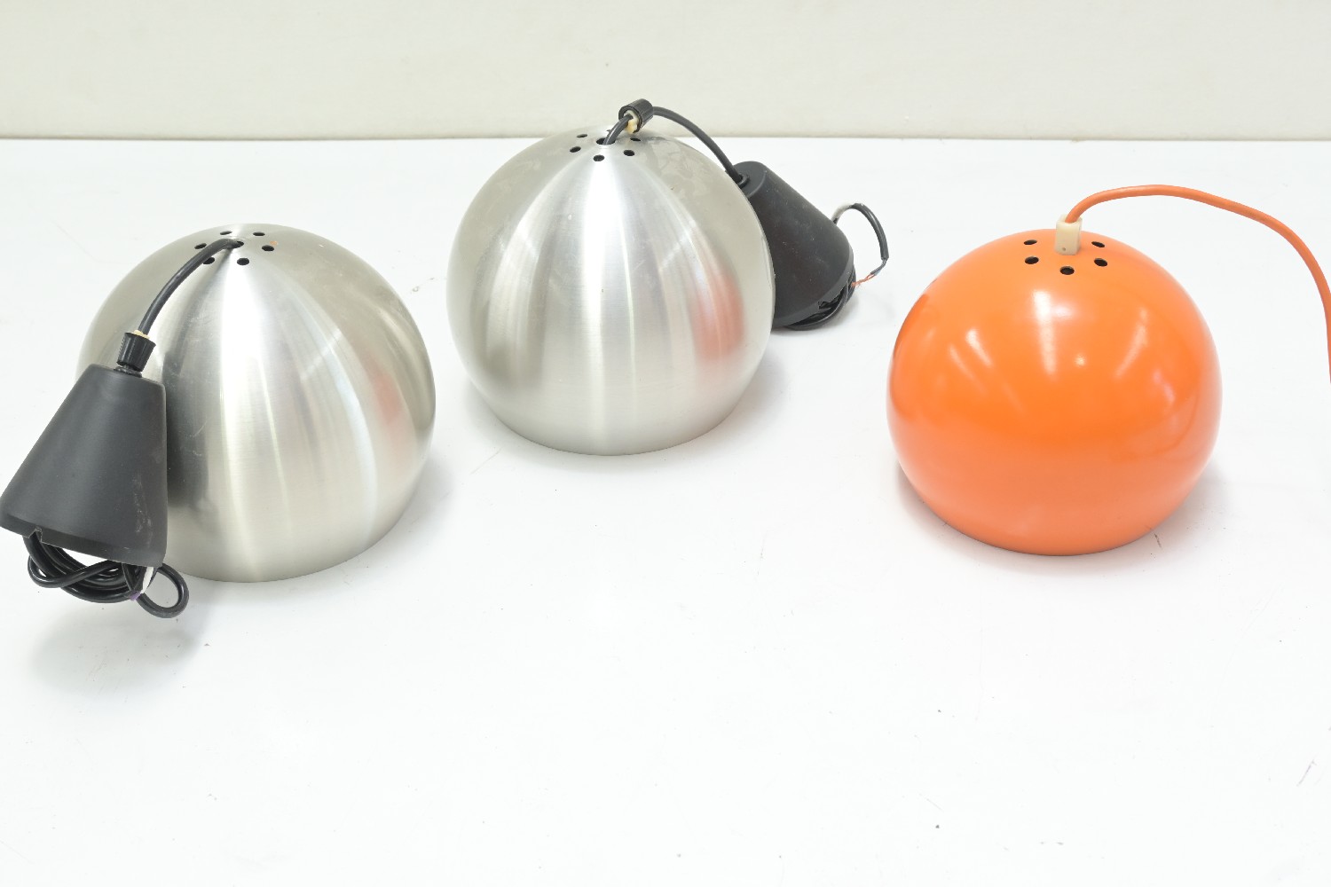 A PAIR OF DANISH CHROME PENDANT LIGHTS AND ONE OTHER (18DIA CM) (LEONARD JOEL DELIVERY SIZE: MEDIUM)