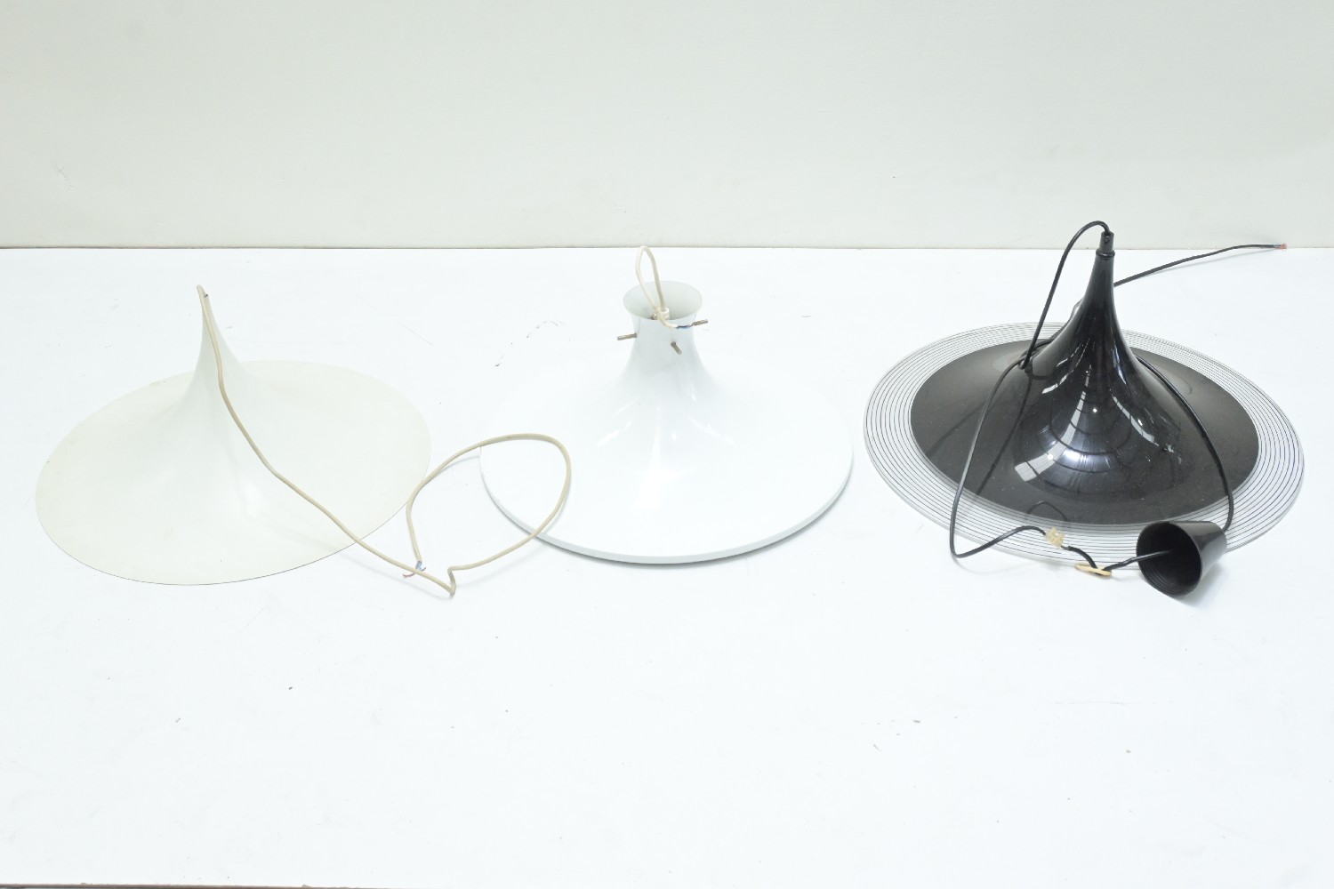 A COLLECTION OF THREE DANISH MID CENTURY PENDANT LIGHTS (LARGEST 33H X 52DIA CM) (LEONARD JOEL DELIVERY SIZE: LARGE)
