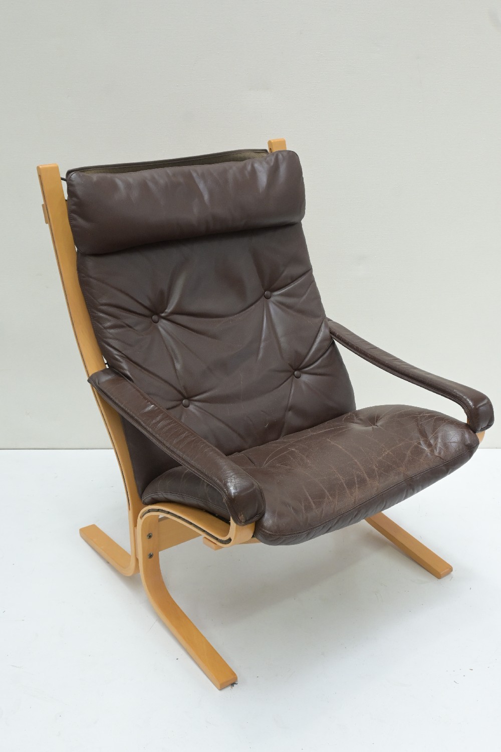 A DANISH BENTOOD LEATHER LOUNGE CHAIR (98H X 73W X 84D CM) (LEONARD JOEL DELIVERY SIZE: LARGE)