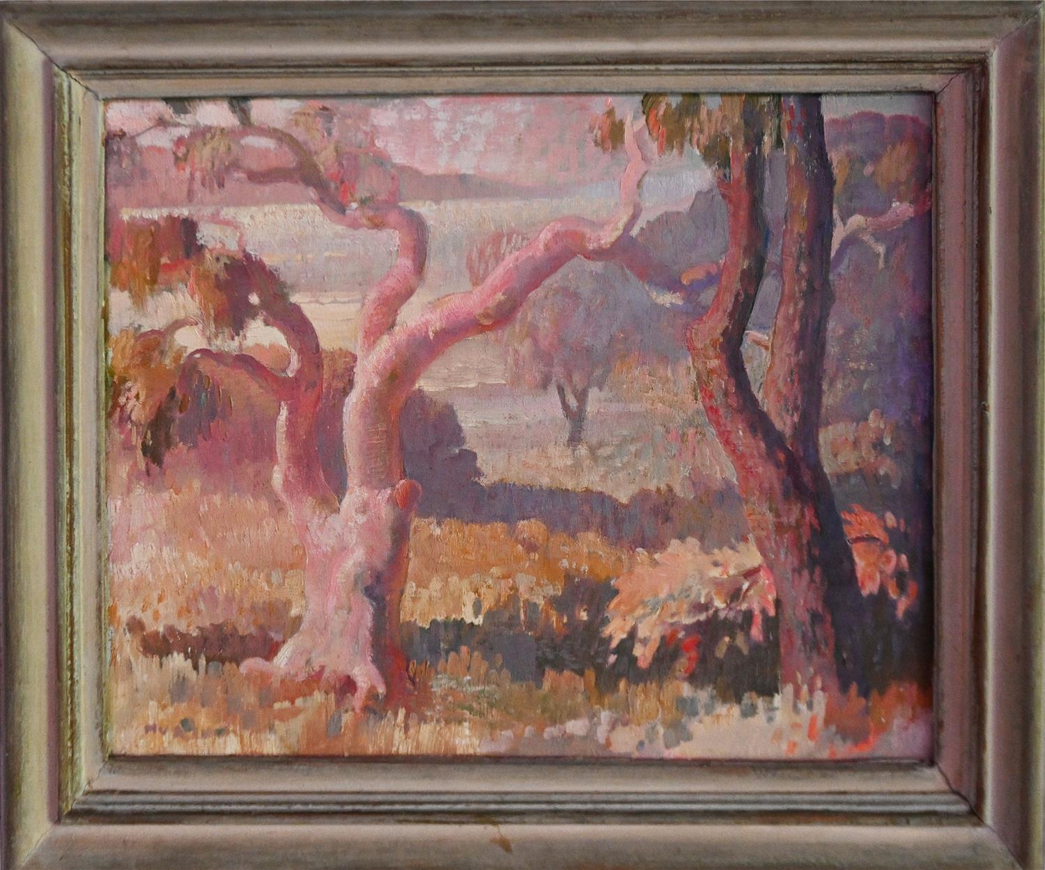 ARTHUR MURCH, FIRE HAZE, PITTWATER, OIL ON BOARD, SIGNED LOWER LEFT, TITLED VERSO, 37 X 47.5CM, FRAME SIZE: 48 X 59CM
