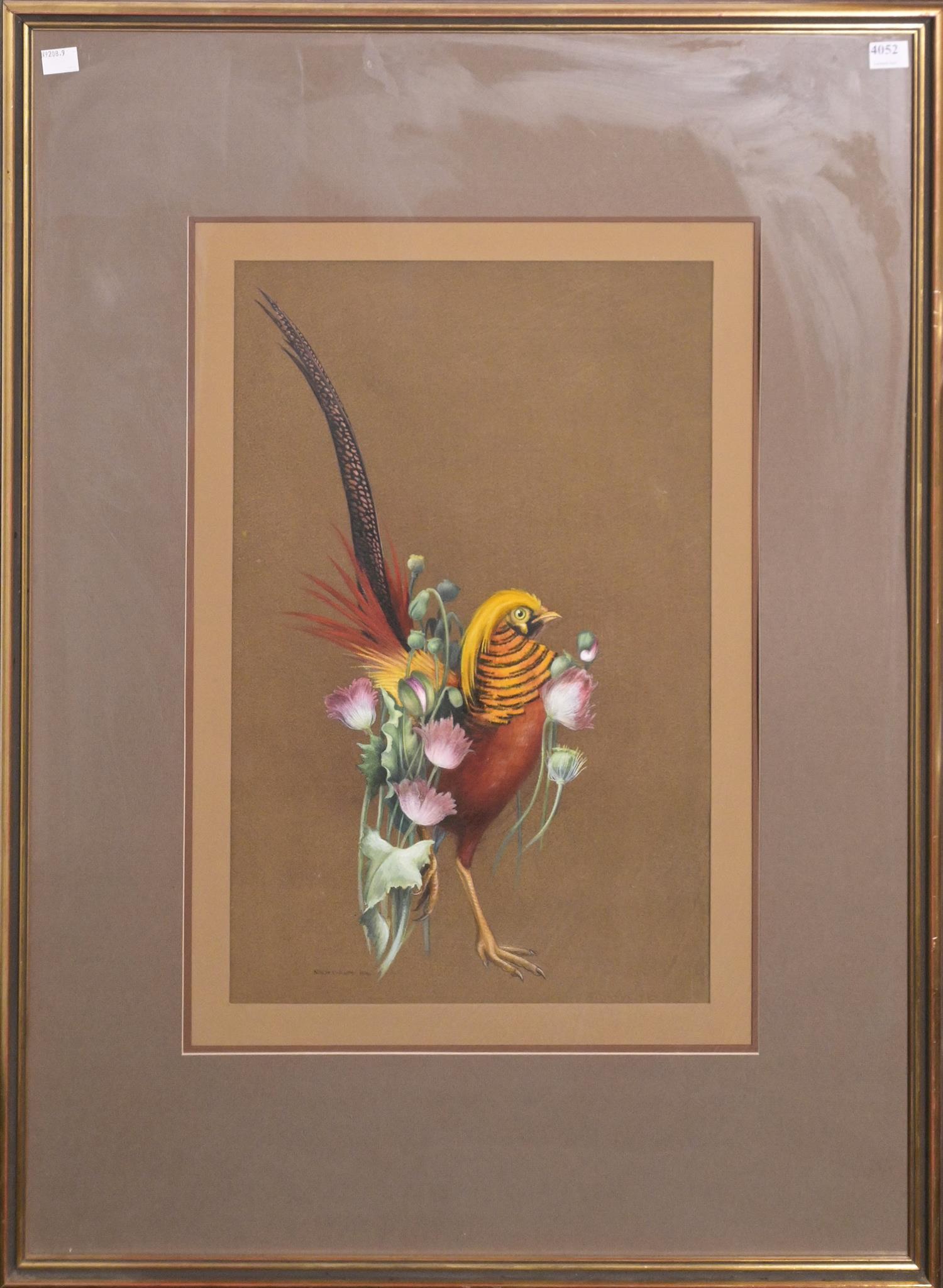NINON PHILLIPS, (BIRD STUDY) 1976, GOUACHE ON PAPER, SIGNED AND DATED LOWER LEFT, 48.5 X 31CM, FRAME SIZE: 84 X 61.5CM