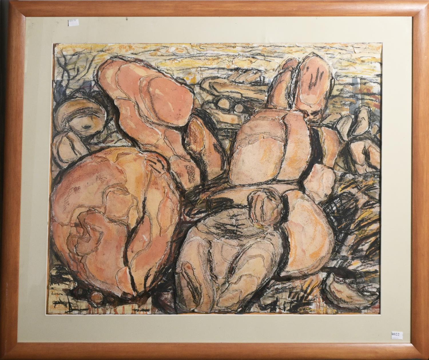 GEORGE GITTOES, UNTITLED 1987, CHARCOAL, PASTEL AND GOUACHE ON COLLAGED PAPER, SIGNED AND DATED LOWER RIGHT, 66 X 76CM, FRAME SIZE: 87 X 97CM