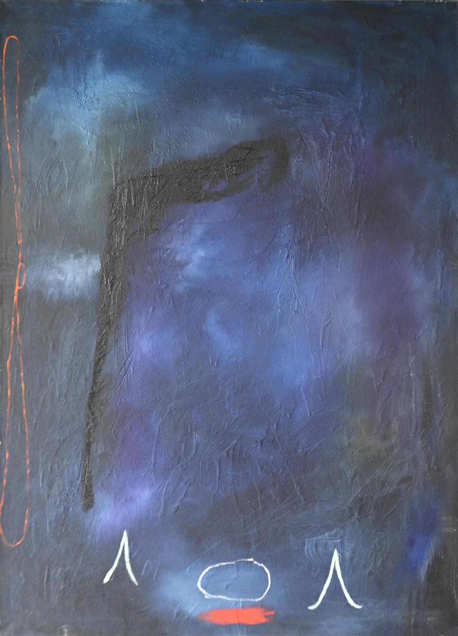 ARTIST UNKNOWN, BLUE ABSTRACT II, MIXED MEDIA ON CANVAS, UNSIGNED, 183 X 244CM