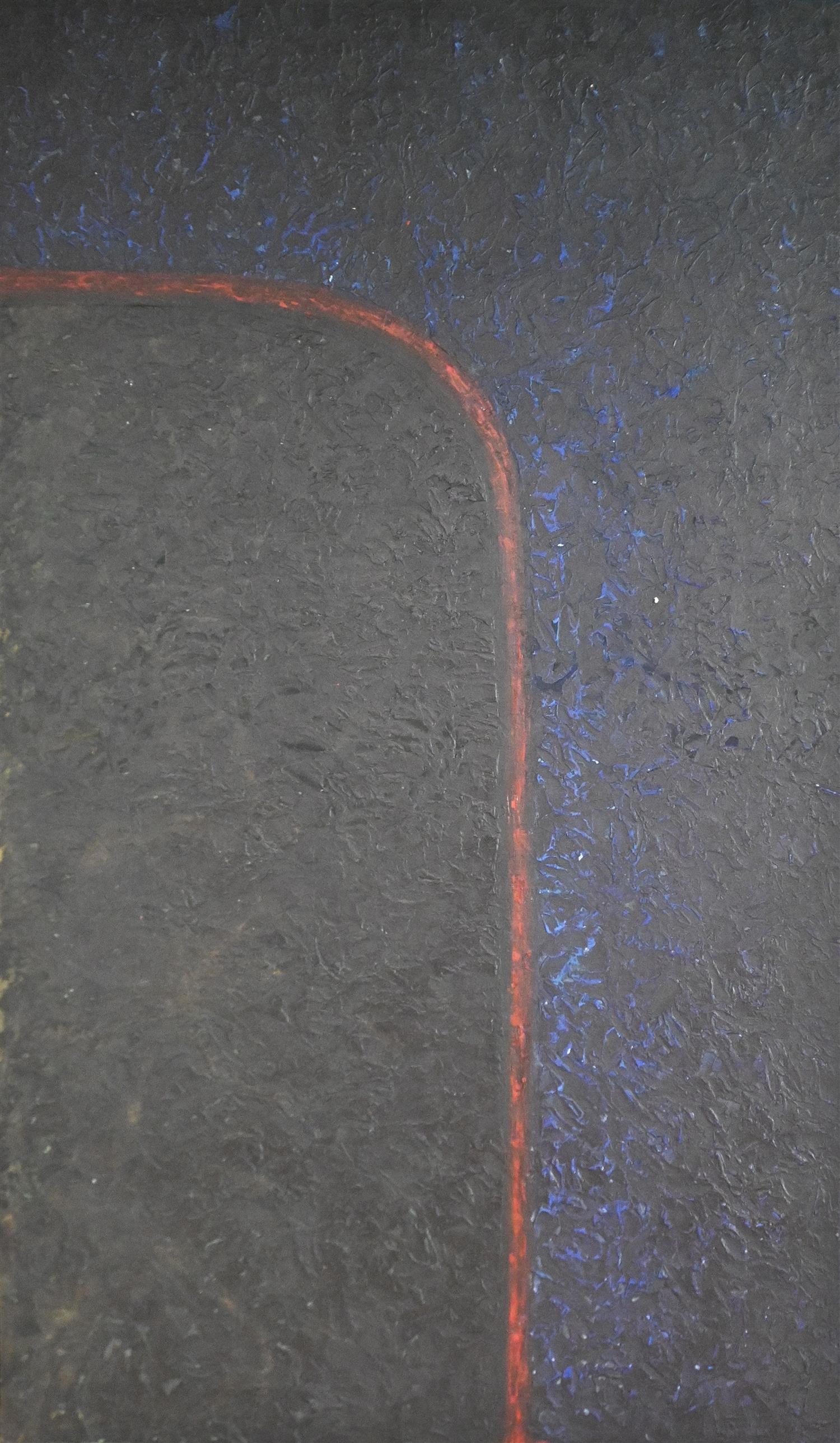 PETER ADSETT, DAY 5 THE FACE OF DARKNESS 1992, OIL ON CANVAS LAID ON BOARD, SIGNED, TITLED AND DATED VERSO, 214 X 122CM