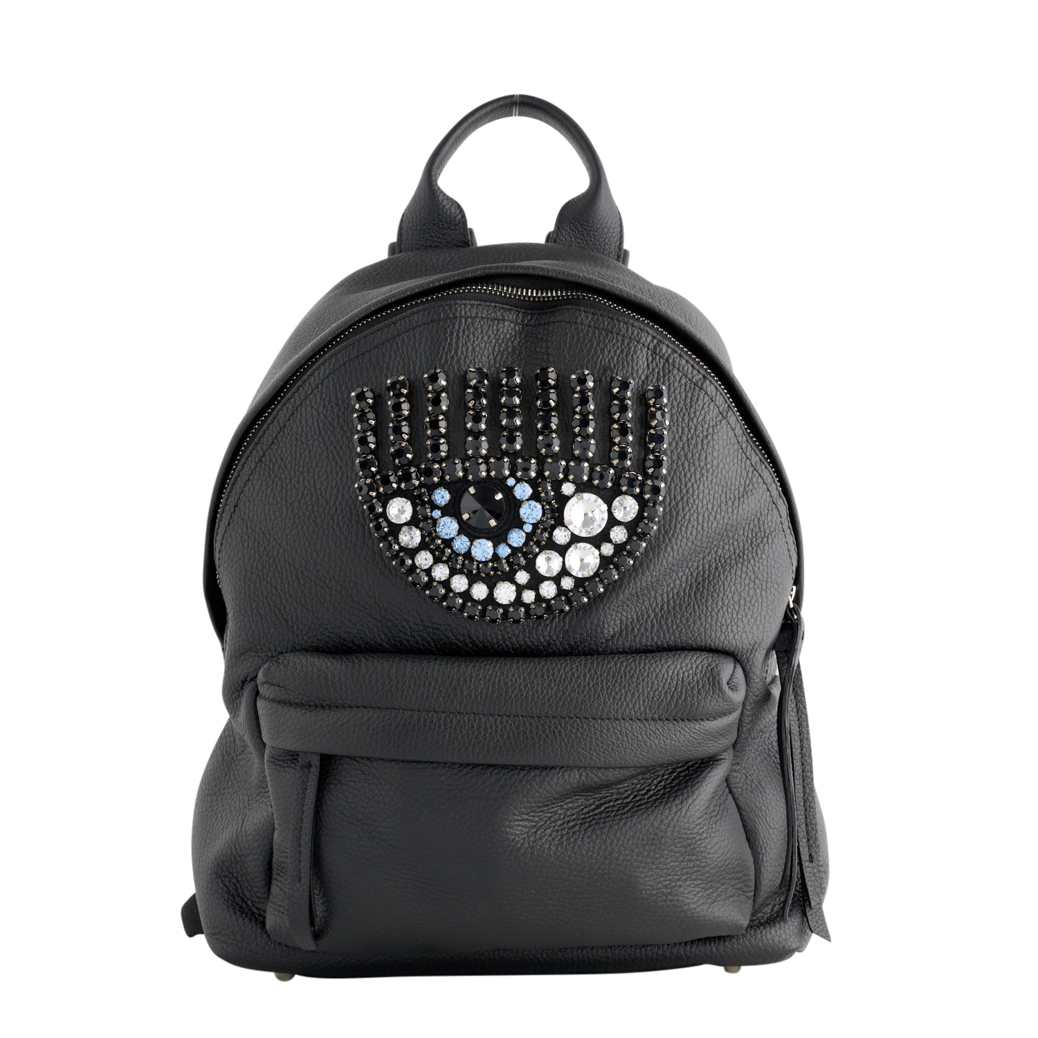 CHIARA, A BACKPACK STYLED IN GRAINED LEATHER WITH CRYSTAL EMBELLISHMENT, 35 X 34 X 11, ACCOMPANIED BY ORIGINAL DUST BAG