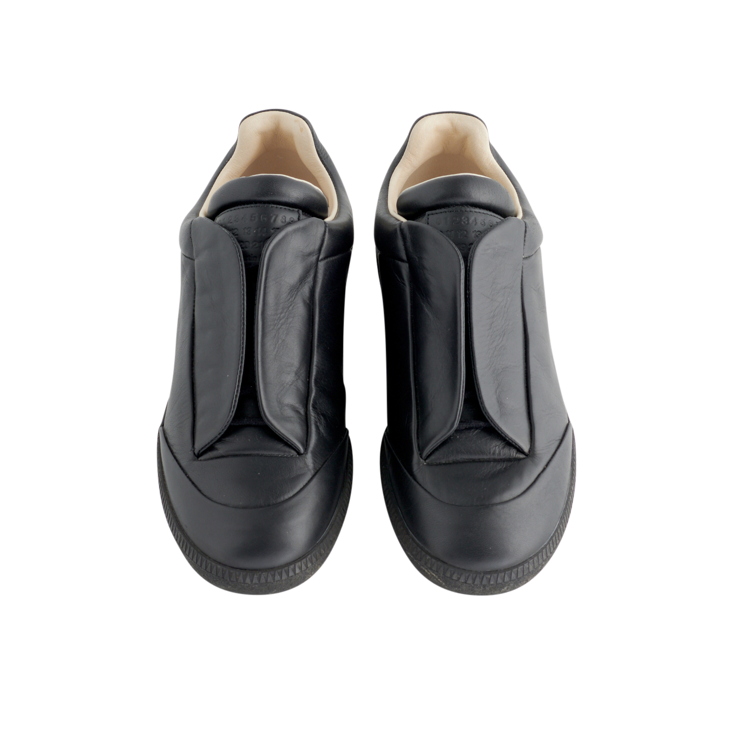 MAISON MARGIELA, PAIR OF SNEAKERS IN BLACK LEATHER WITH WHITE LEATHER INNER, MARKED SIZE 40